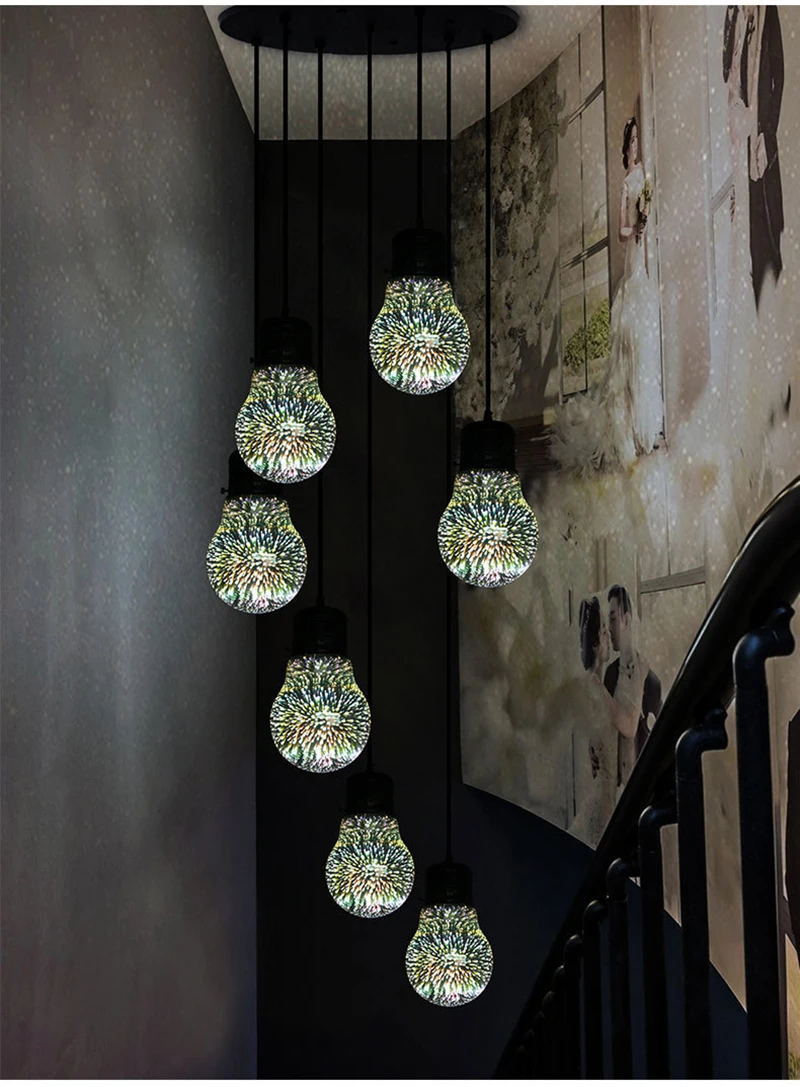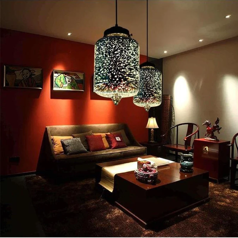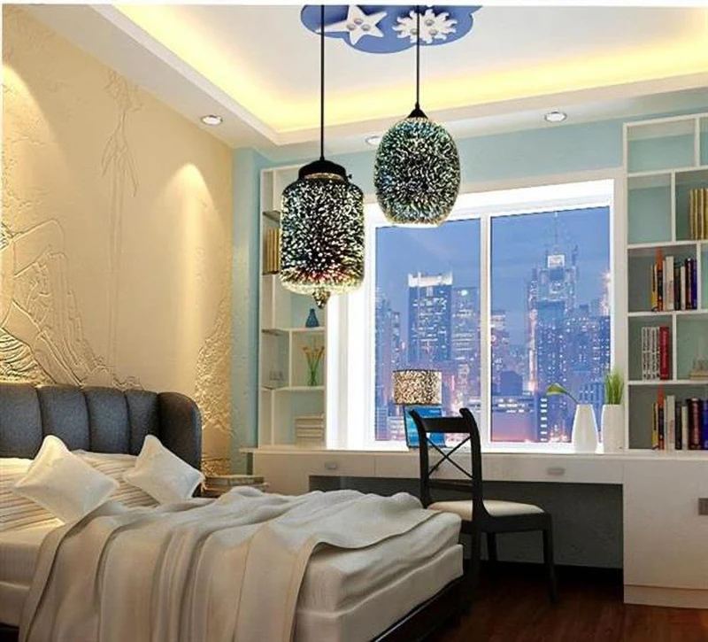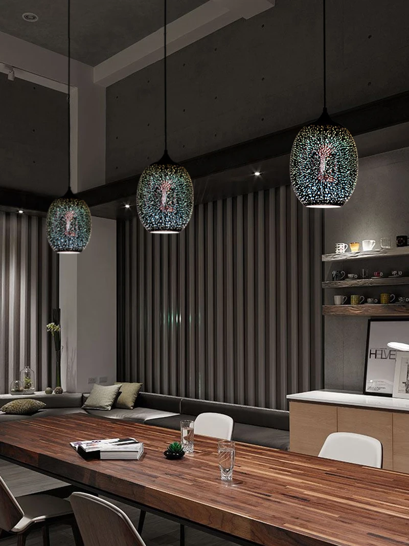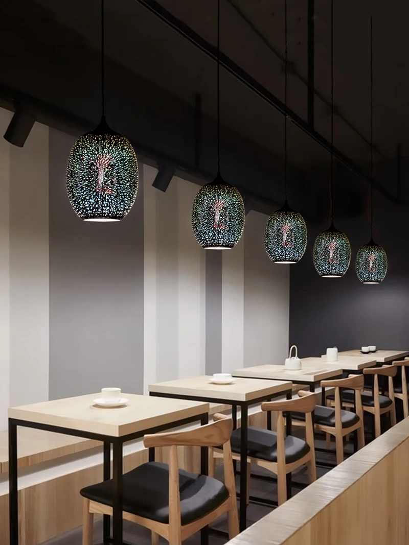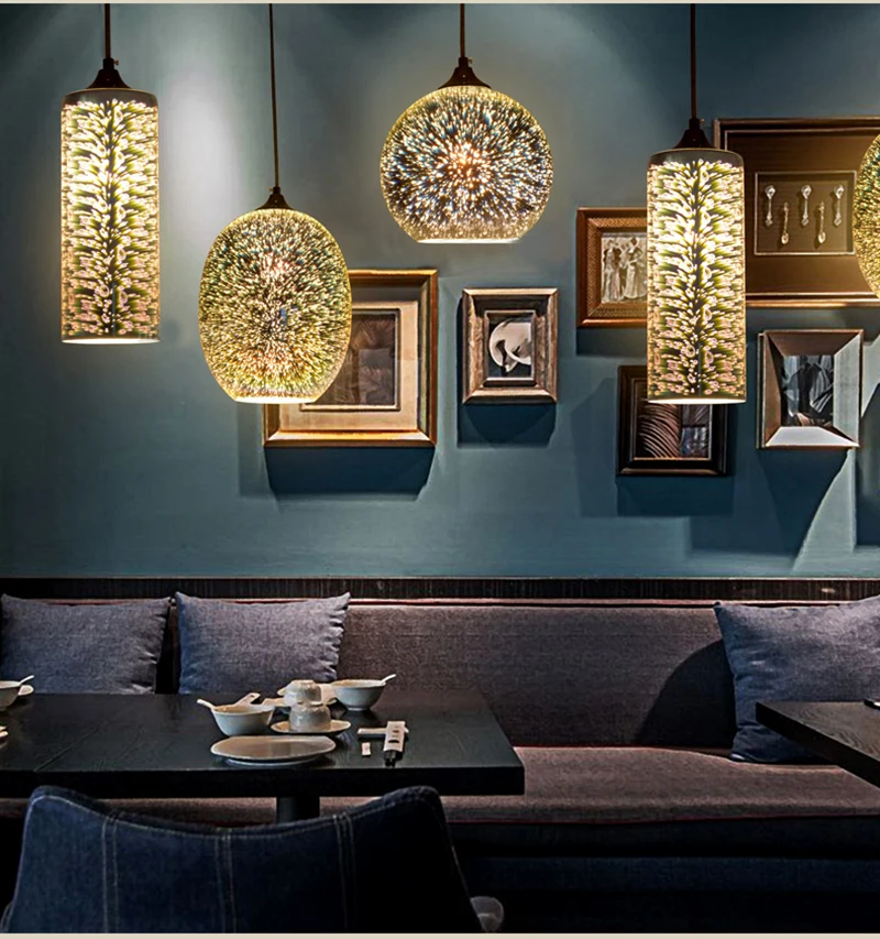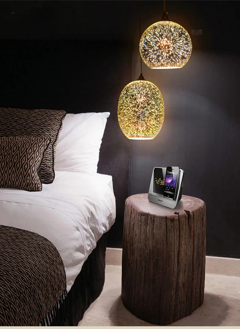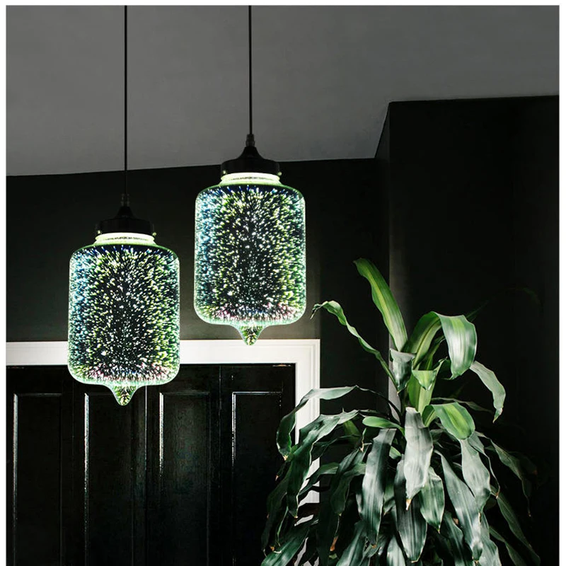 포스트 모던 3D 다채로운 유리 공 펜던트 조명 북유럽 별이 빛나는 하늘 램프 레스토랑 침실 장식 산업 조명 야간 조명