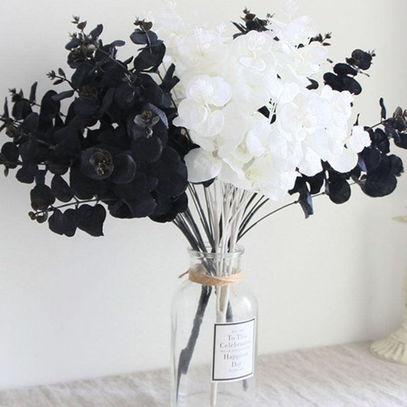 시뮬레이션 흑백 유칼립투스 잎 인공 꽃 줄기