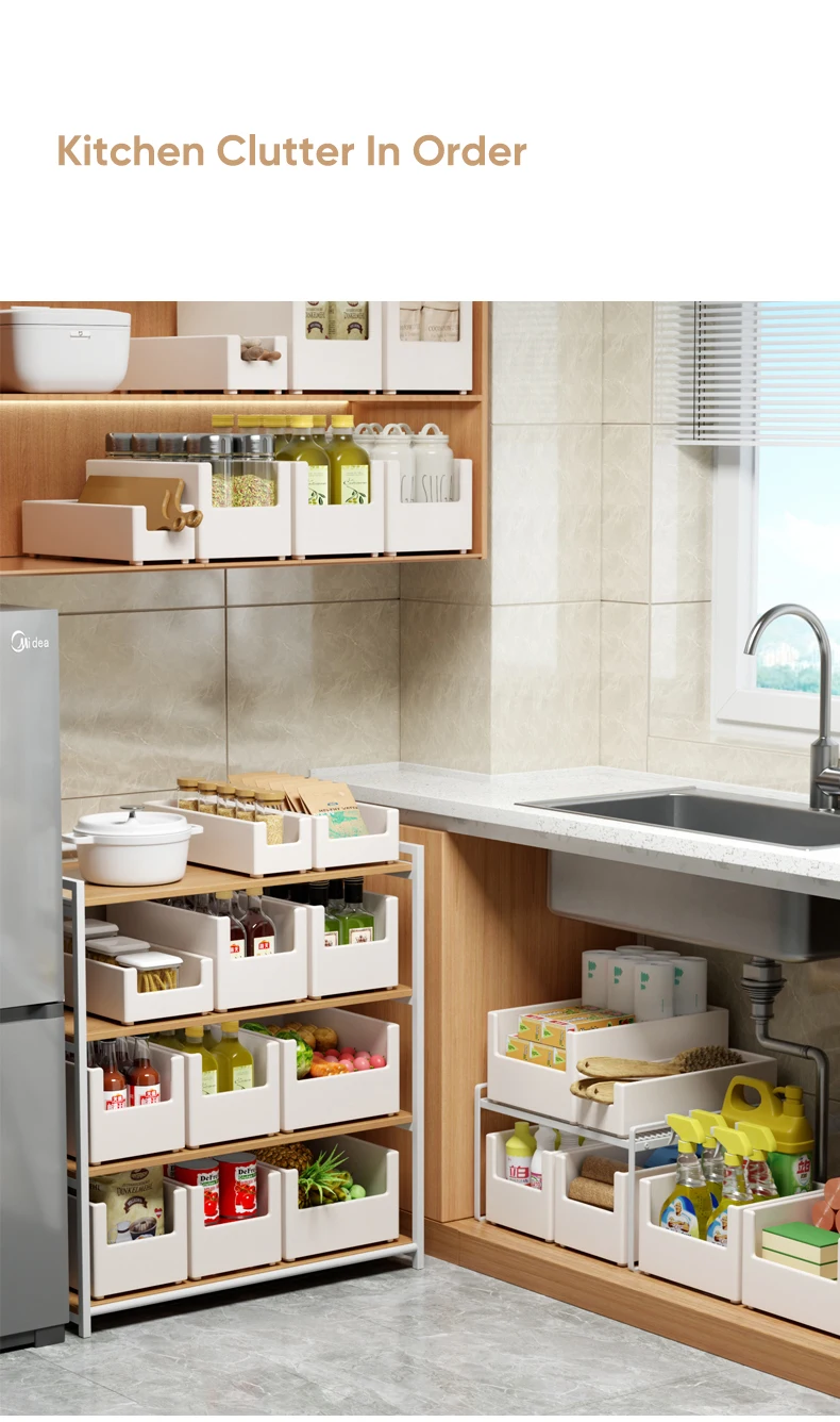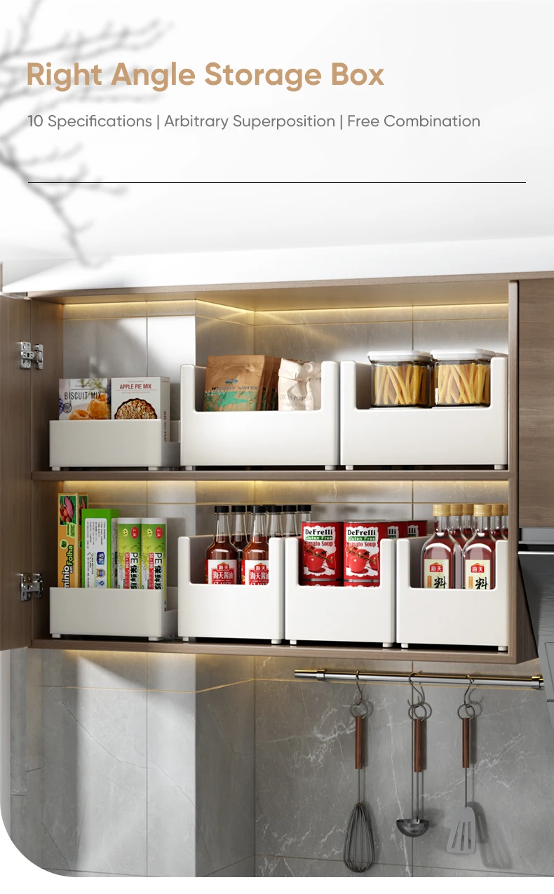 - Kitchen Sundries Organizer Box를 사용하여 주방과 식품 저장실을 깔끔하게 정리하세요. 이 다용도 보관 솔루션은 간식, 화장품, 향신료를 깔끔하게 보관하는 데 적합합니다.