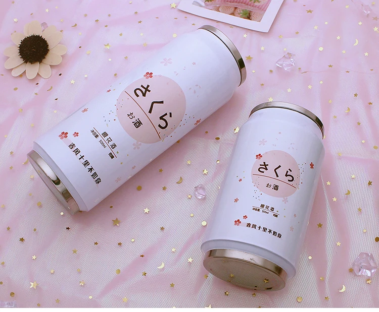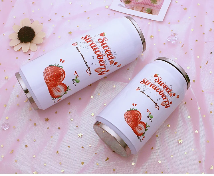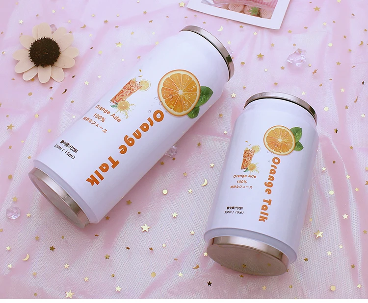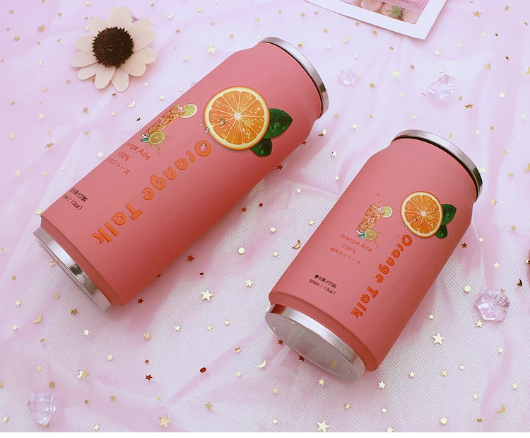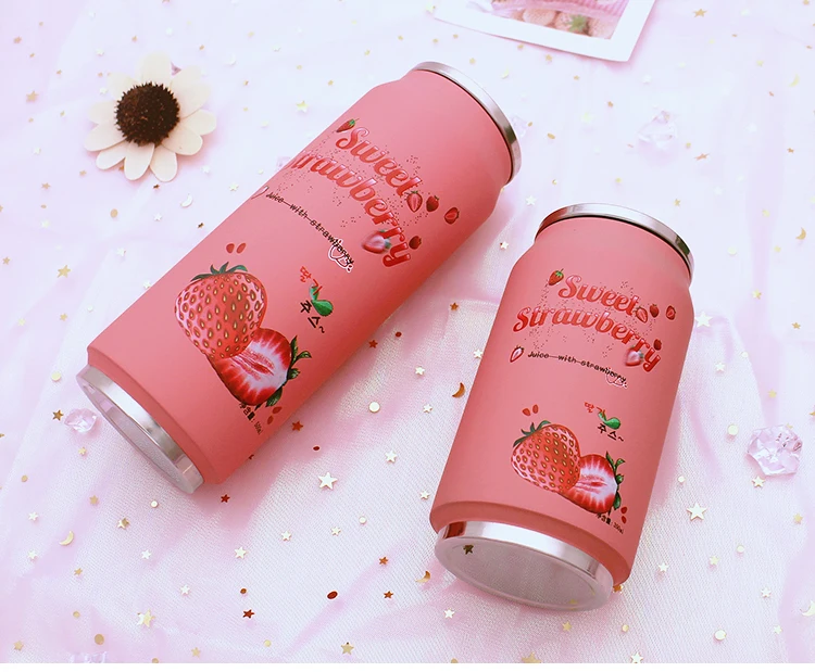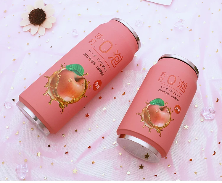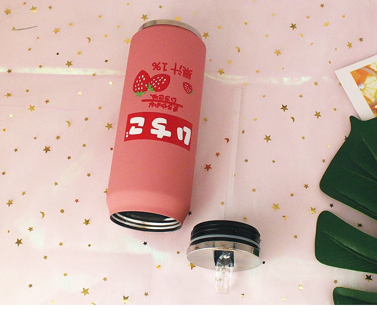 스테인레스 스틸 진공 보온병 일본 주스 캔디 컬러 음료 캔 보온병 휴대용 남여 학생 성격 유행 밀짚 컵