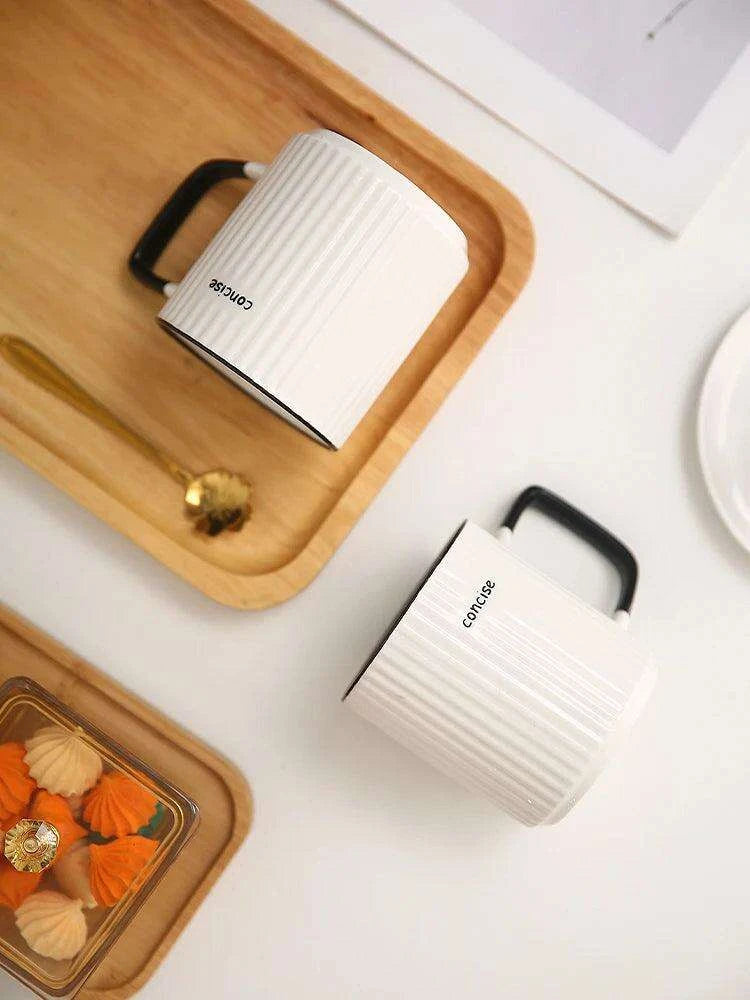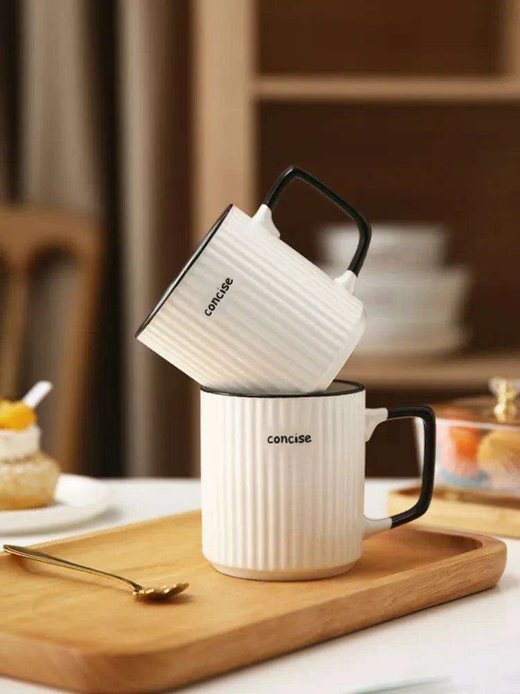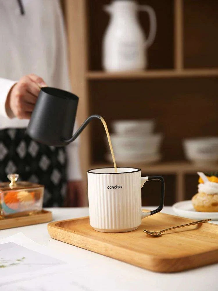 Elegant Wave Pattern Bone China Coffee Mug - 400ml Capacity, Stylish and Practical
