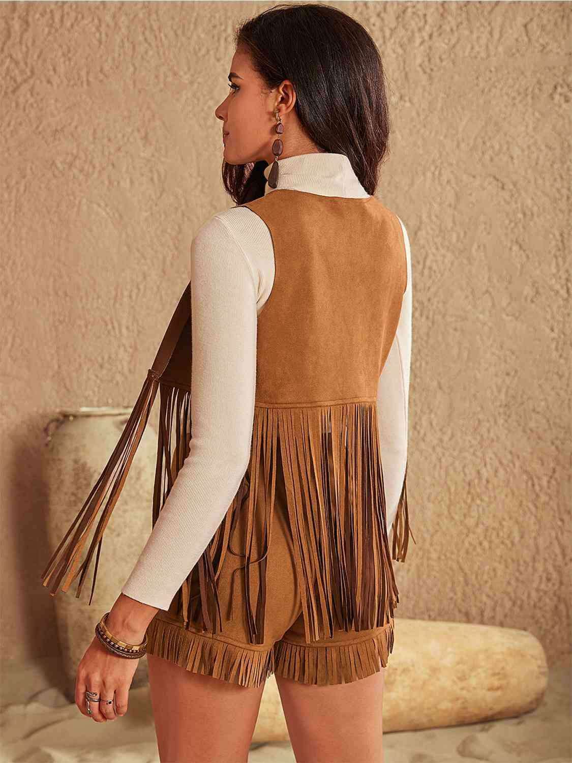 태슬 밑단 조끼와 레이스업 반바지 세트