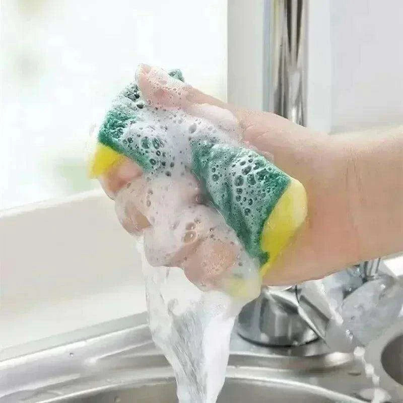 • Multi-Functional Design: Each sponge combines a soft sponge side with a durable fiber scouring pad, allowing for powerful scrubbing while protecting your surfaces.