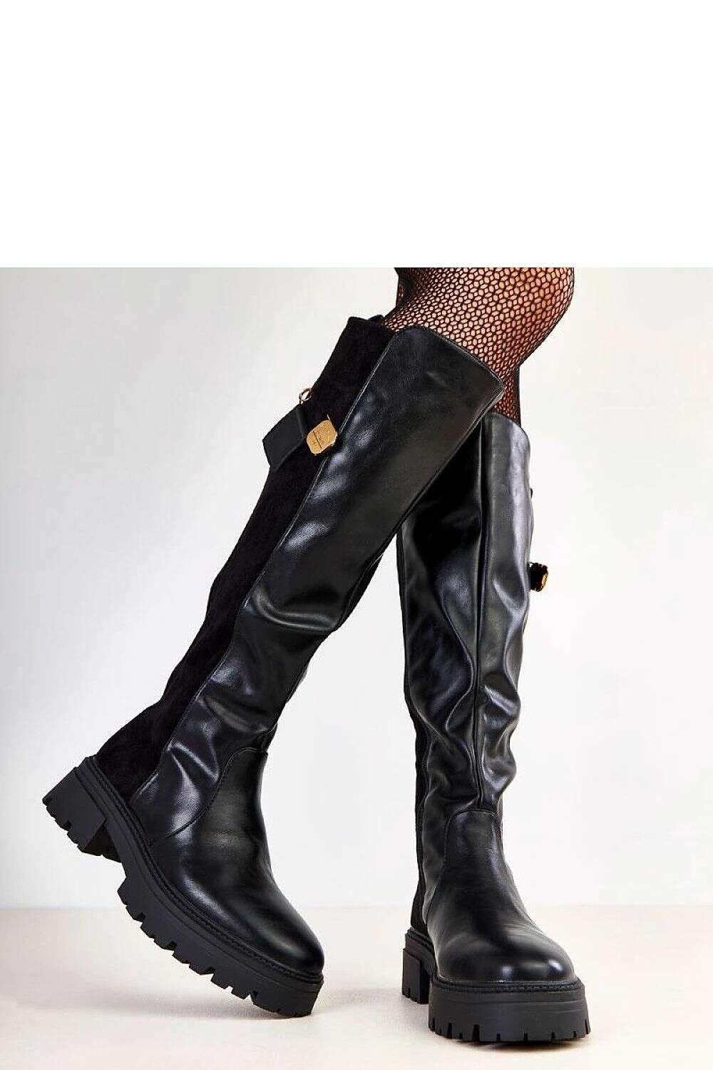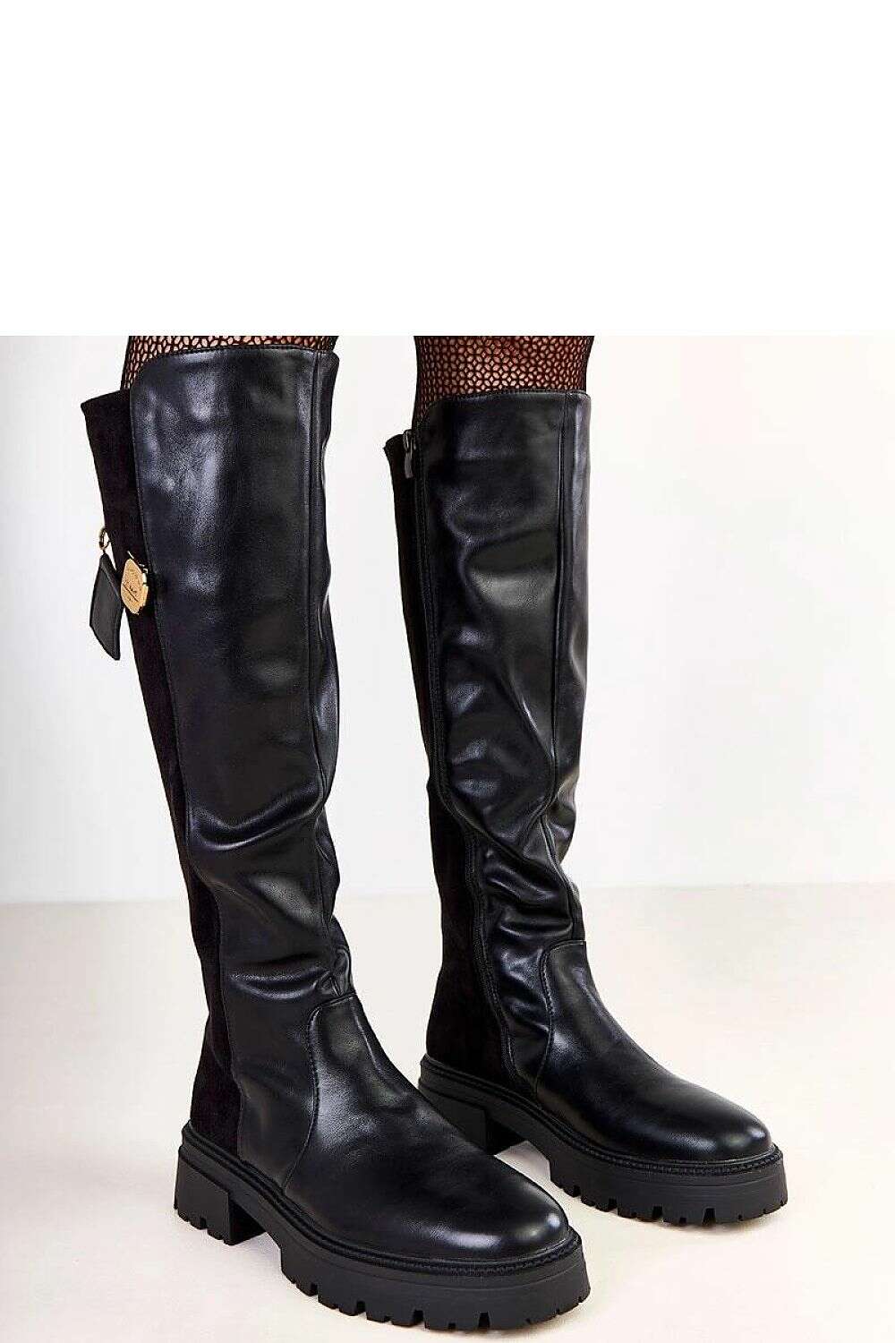 Elevate your cold-weather style with Thigh High Boots 219652 with Gold Clasp Synthetic Leather. Crafted from high-quality synthetic leather, they pair a timeless knee-high silhouette with a subtle, eye-catching gold clasp detail that adds a touch of luxury to any look. The 40 cm shaft flatters and elongates the leg, while the rounded toe and a stable 5.5 cm heel deliver all-day comfort and a polished finish.