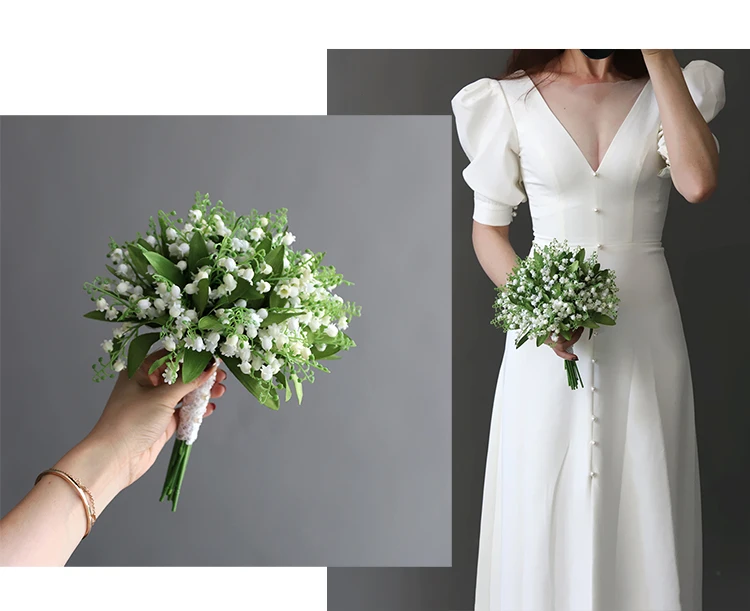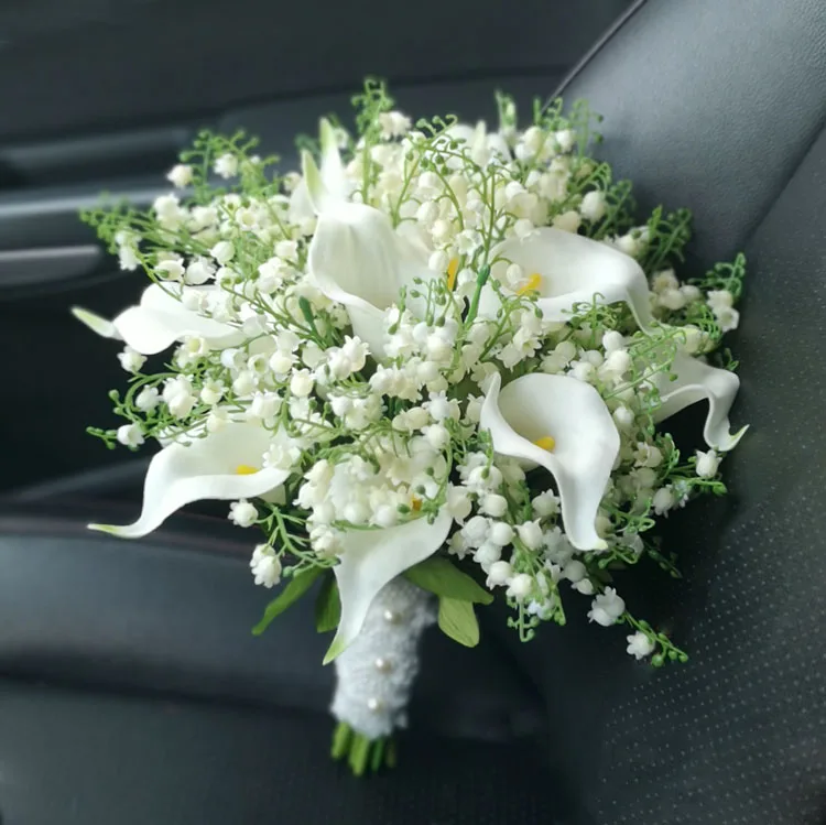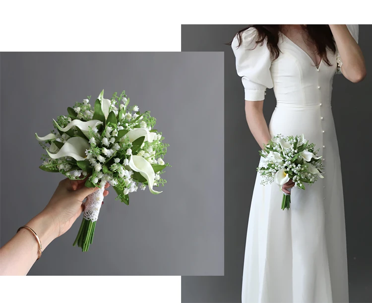 LKY Fr 웨딩 부케 신부 액세서리 칼라 릴리 신부 부케 신부 들러리 흰색 플라스틱 릴리 밸리 결혼 장식