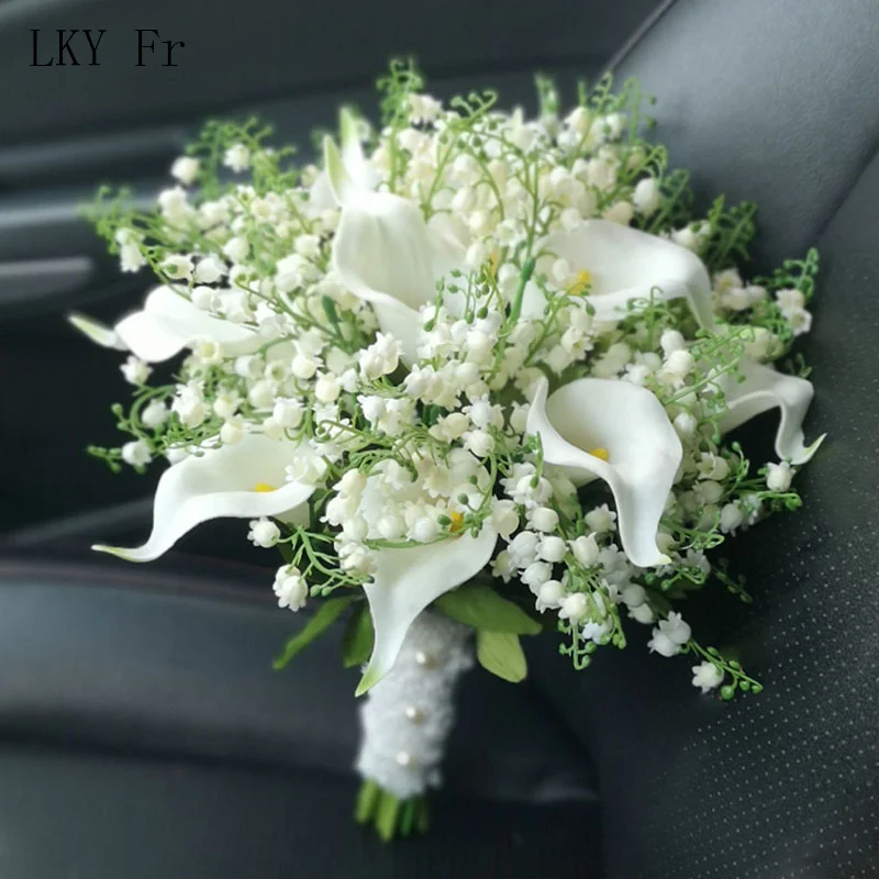 LKY Fr 화이트 릴리 밸리 웨딩 부케 신부 부케 Mariage 액세서리 신부 들러리를위한 인공 꽃 웨딩 꽃