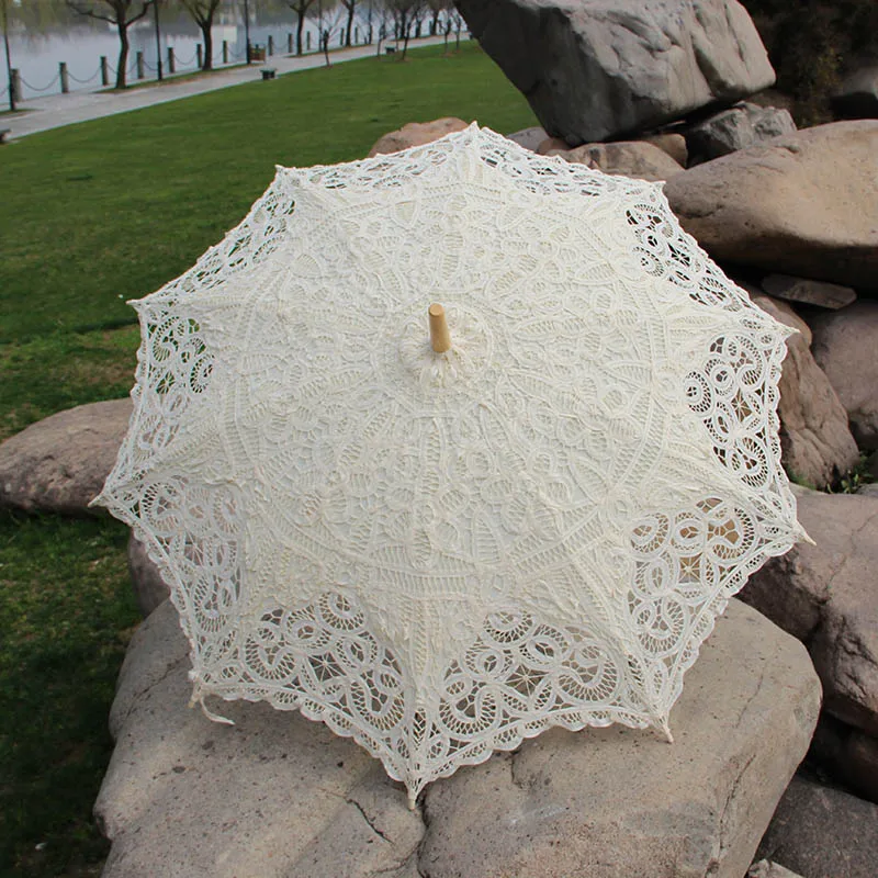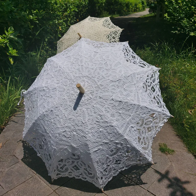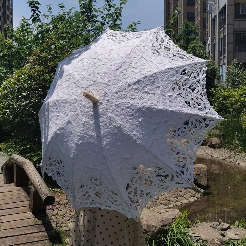 코튼 태양 고정편 빅토리아 레이스 파라솔 우산 후크 손잡이 Battenburg 레이스 파라솔 결혼식
