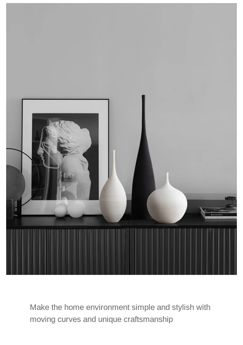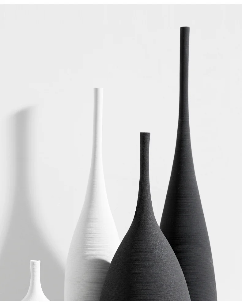 수제 북유럽 흑백 세라믹 젠 꽃병 - 미니멀한 가정 장식