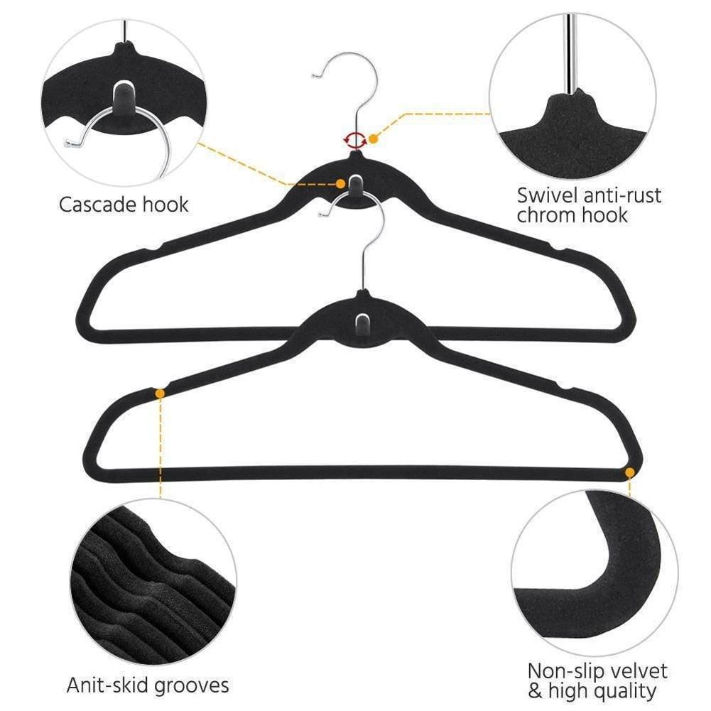 미끄럼 방지 벨벳 옷걸이 - 손쉽게 옷장 정리