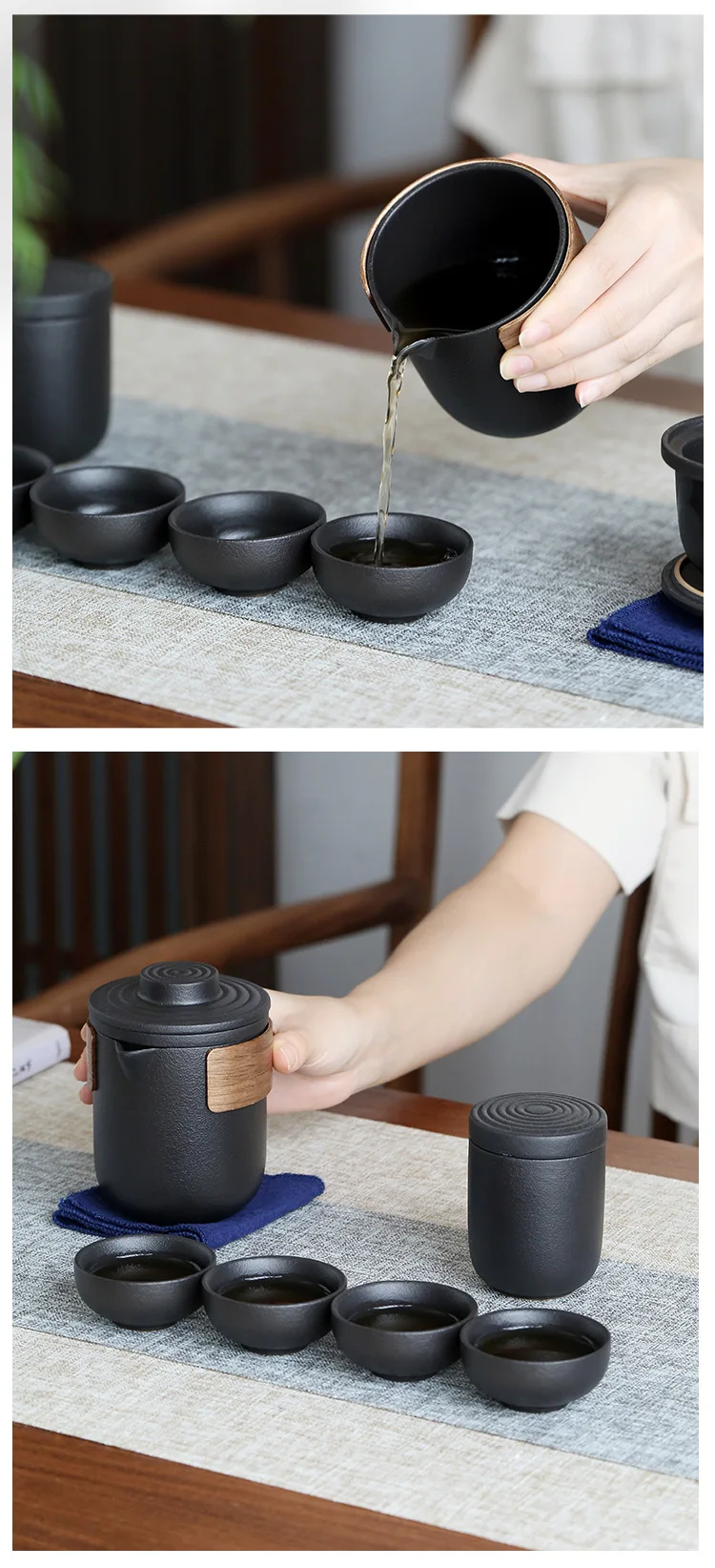 휴대용 여행 쿵푸 차 세트 차 도구 야외 가방 주전자 찻잔 Anti-scalding Quick-passer Cup One Teapot and Four Cups