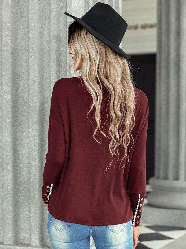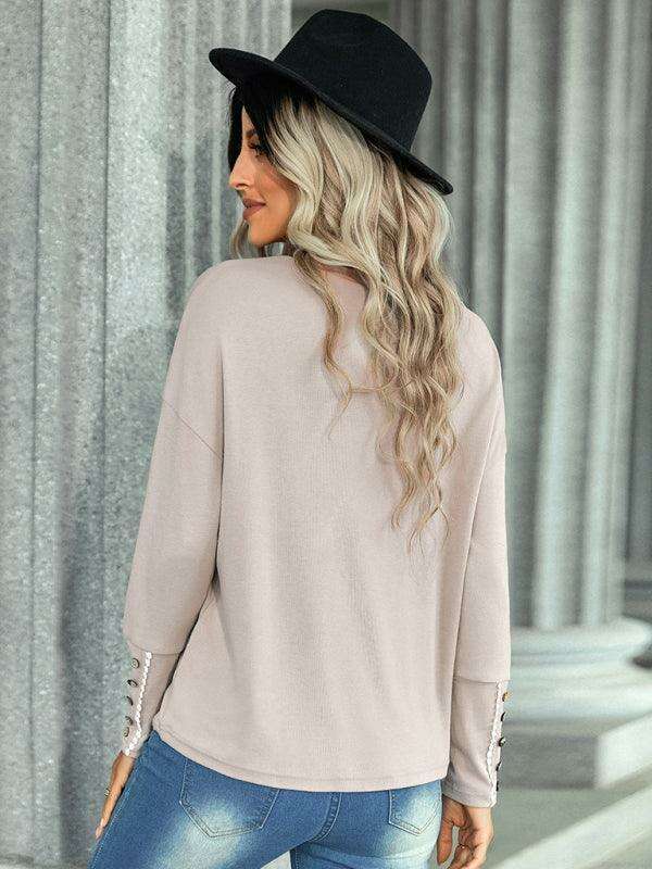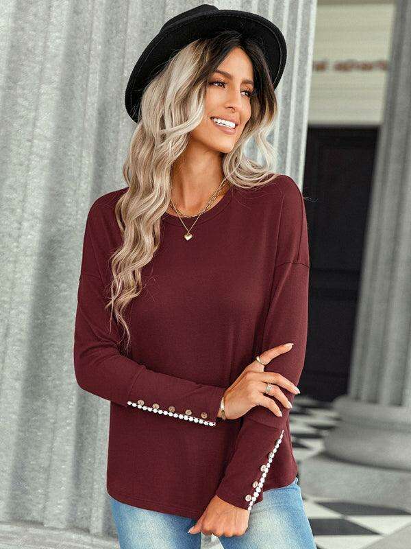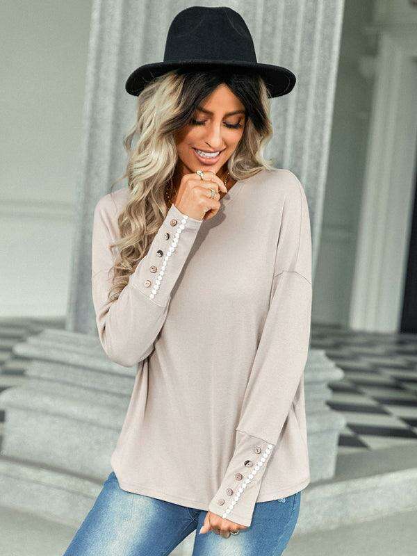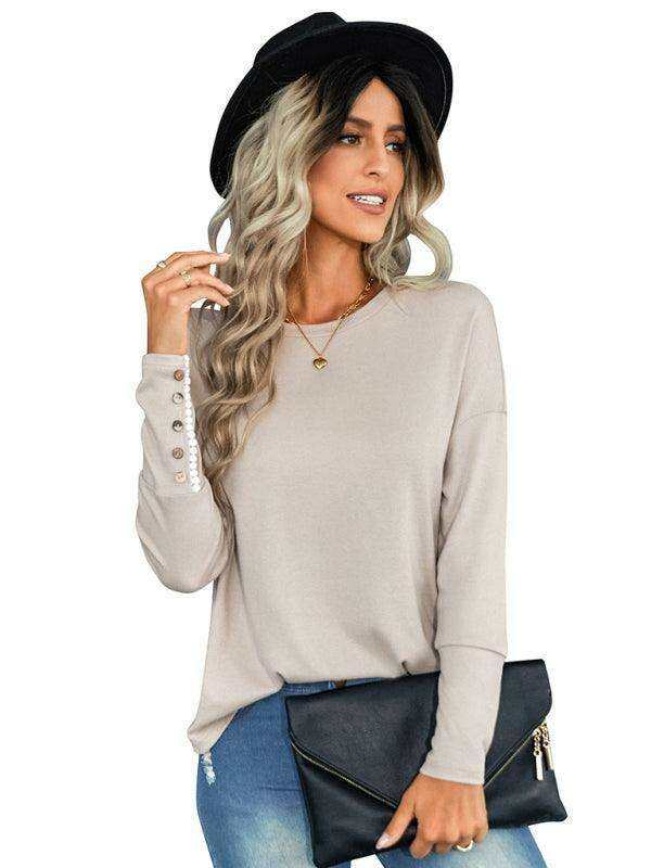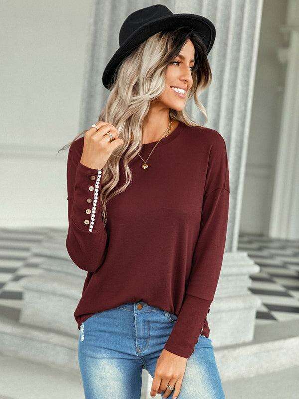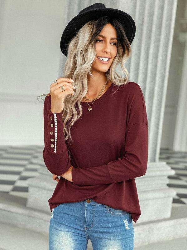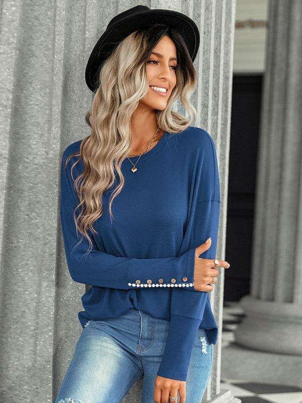 여성 캐주얼 루즈 티셔츠 솔리드 탑