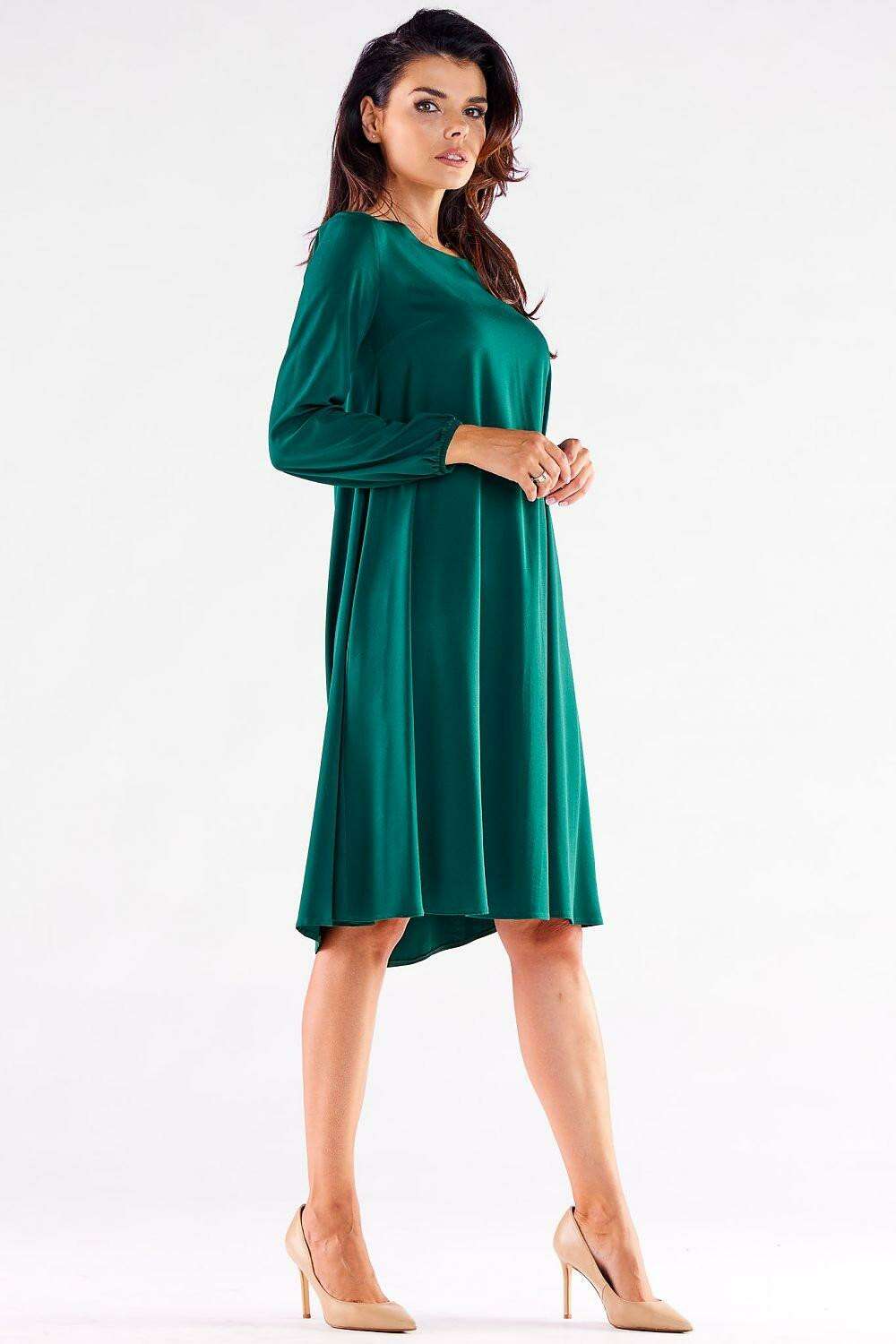 Elegant Trapezoidal Daydress with Stretchy Sleeves