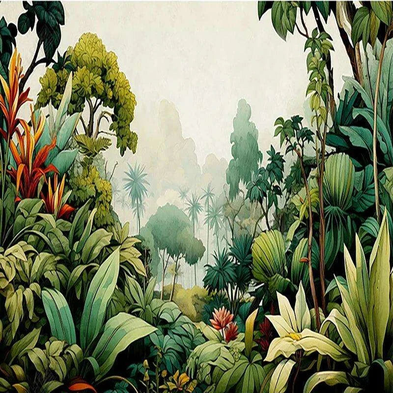 Choose the Lush Tropical Oasis Handcrafted Rainforest Wallpaper Mural to elevate your home's aesthetic and bring the serene beauty of nature indoors. Transform your walls into a breathtaking retreat today!