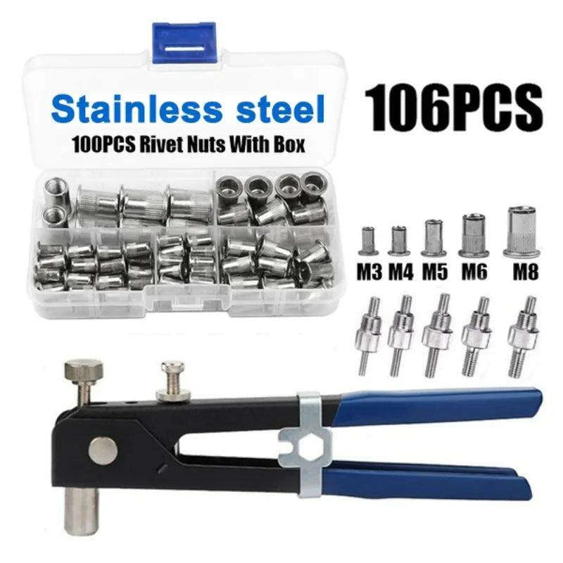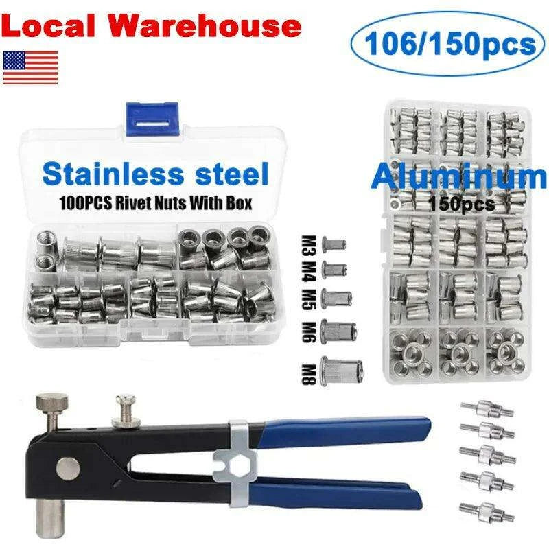 독점 리벳 너트 키트 – 106/150PCS M3-M8 스테인리스 스틸/알루미늄 리벳건 세트로 장인정신을 향상시키세요