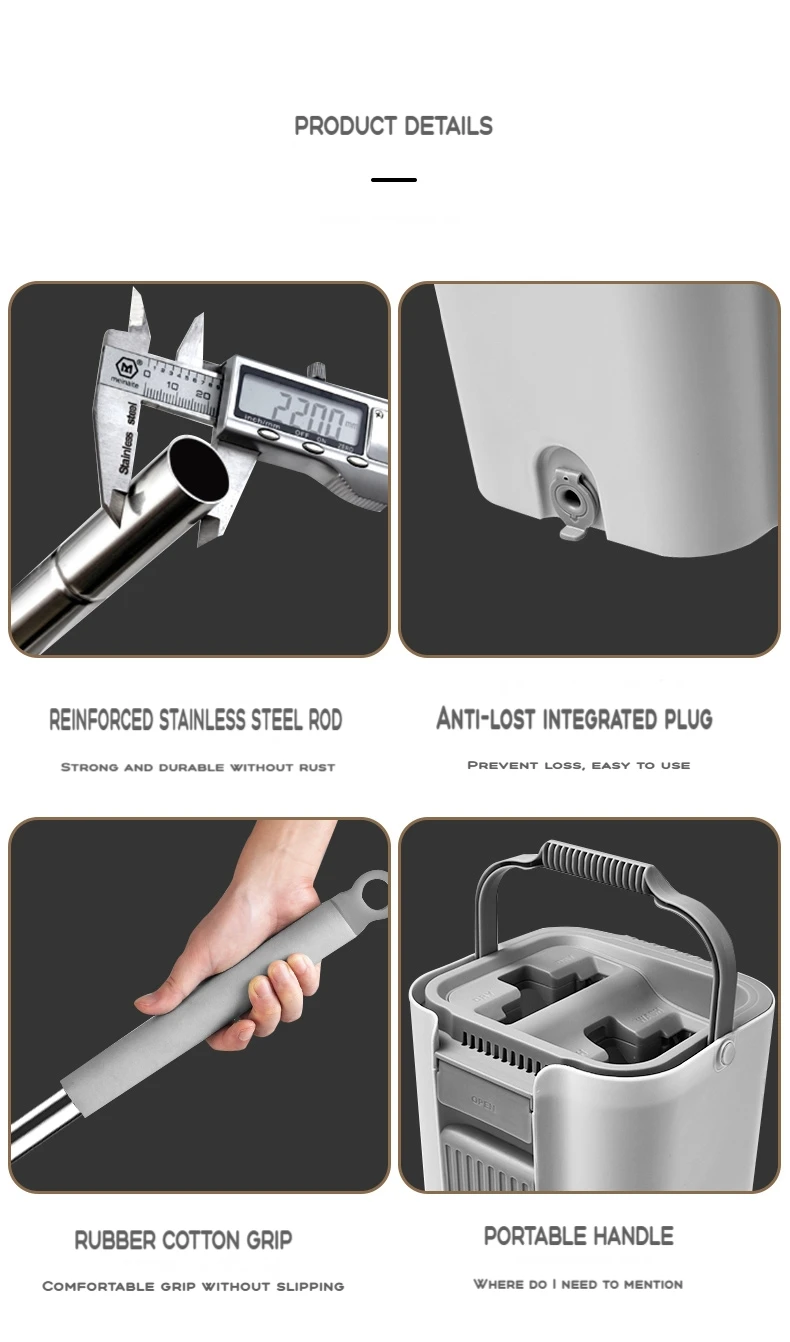 바닥 청소를 효율적이고 빠르게 해주는 Double Scraper Dehydration Mop Bucket을 소개합니다. 그것은 두꺼운 PP 소재로 만들어져 가볍고 녹슬지 않습니다.