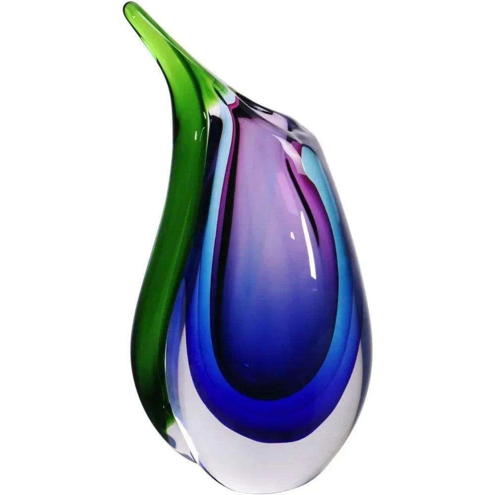 손으로 불어 여러 가지 빛깔의 Sommerso 눈물 예술 유리 꽃병 장식 9.5 인치 높이 센터 피스 테이블 장식 홈 장식