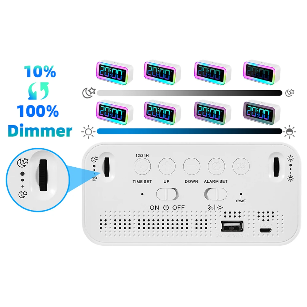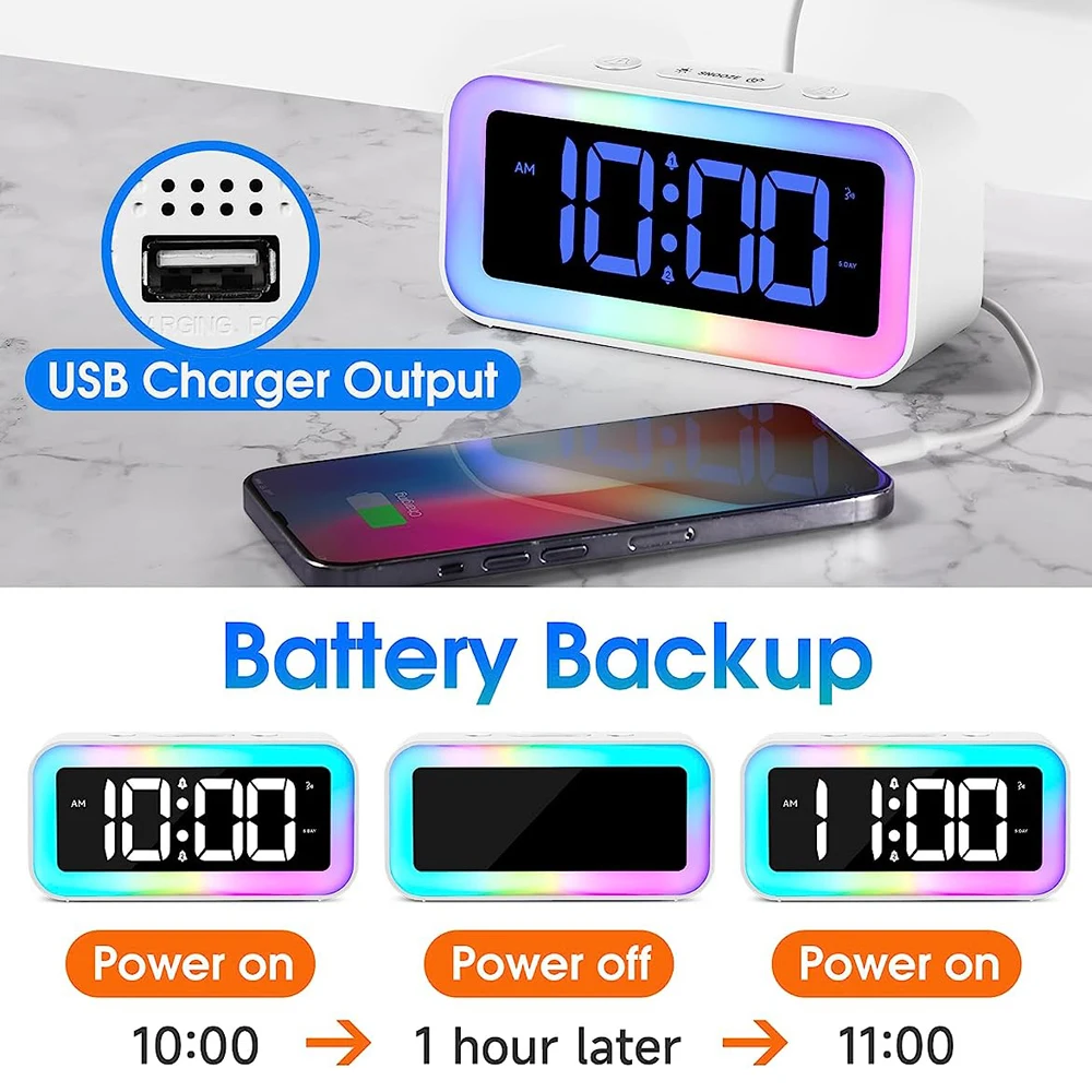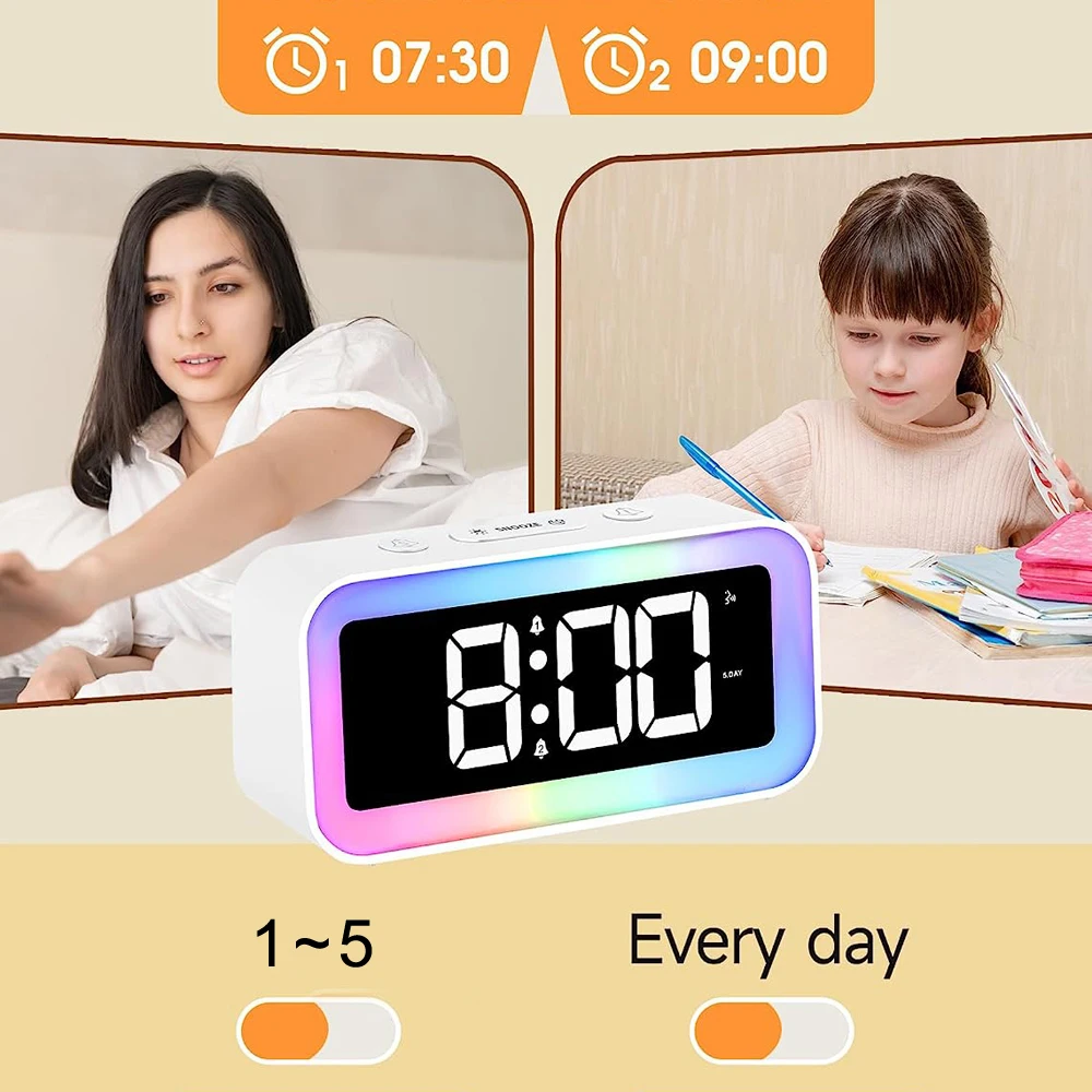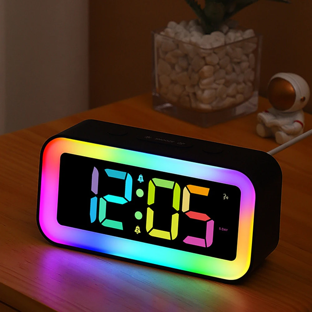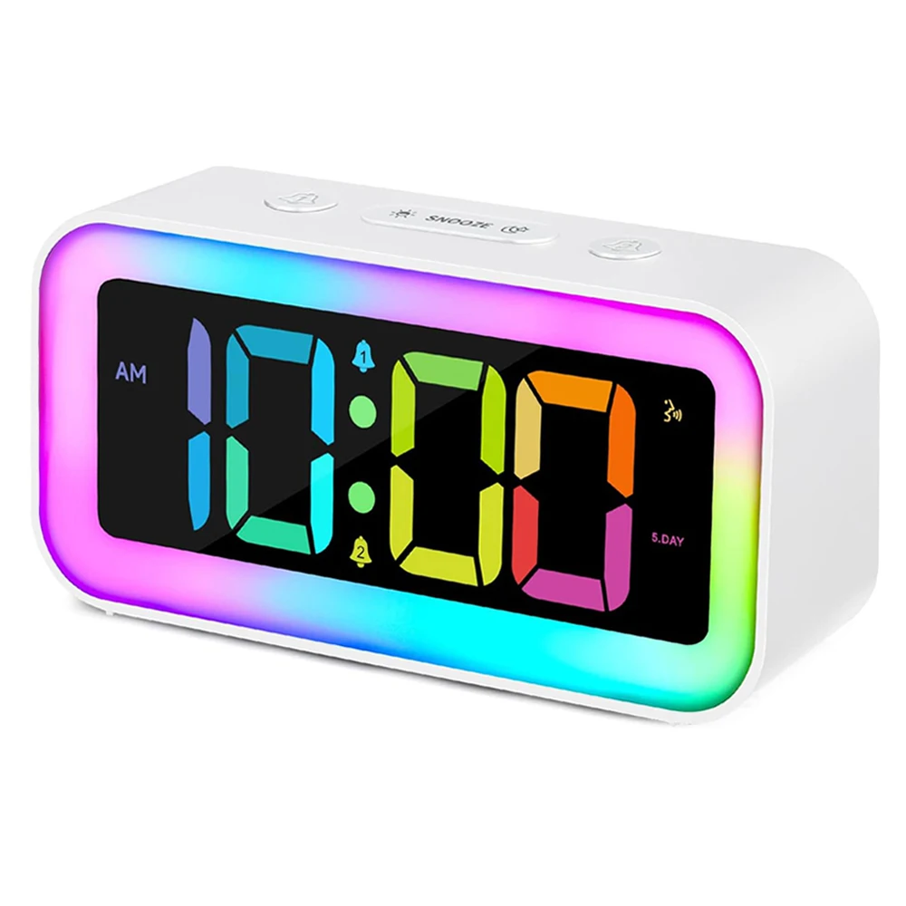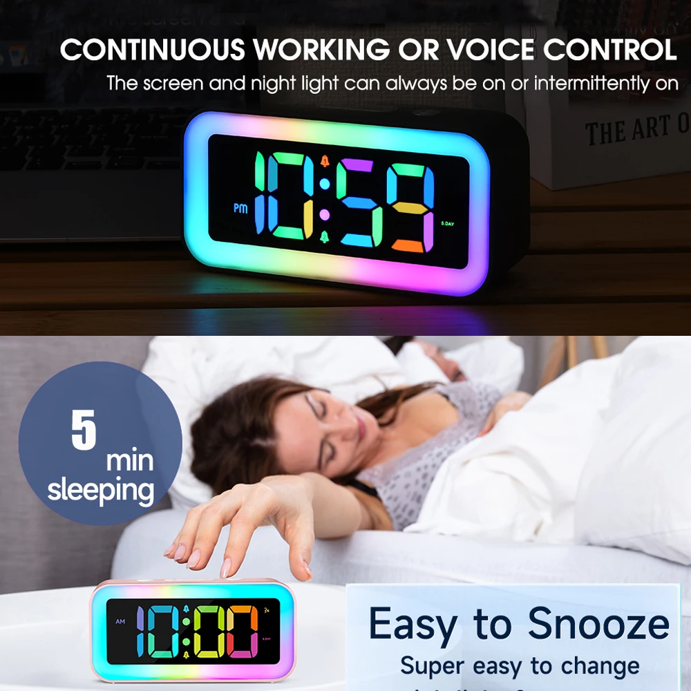 Vibrant RGB Sound-Activated Alarm Clock with Dual Alarm and Multi-Color Night Light for Stylish Home Decor