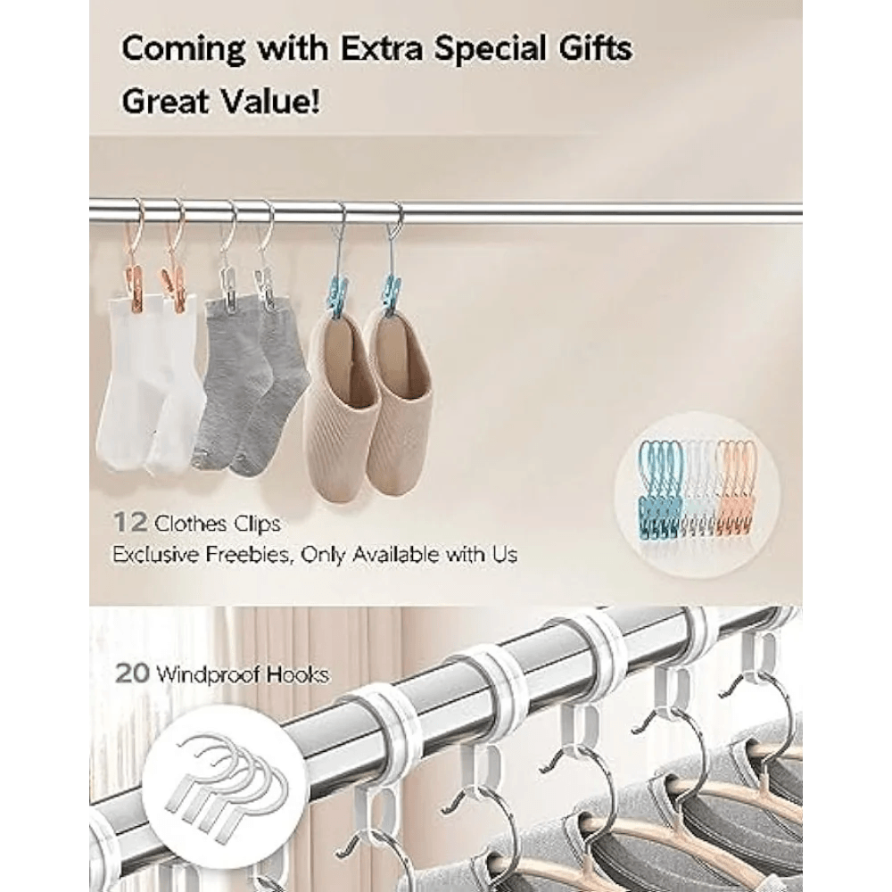 - Extra Special Gifts: Comes with 12 Clothes Clips and 20 Windproof Hooks to enhance your drying experience.