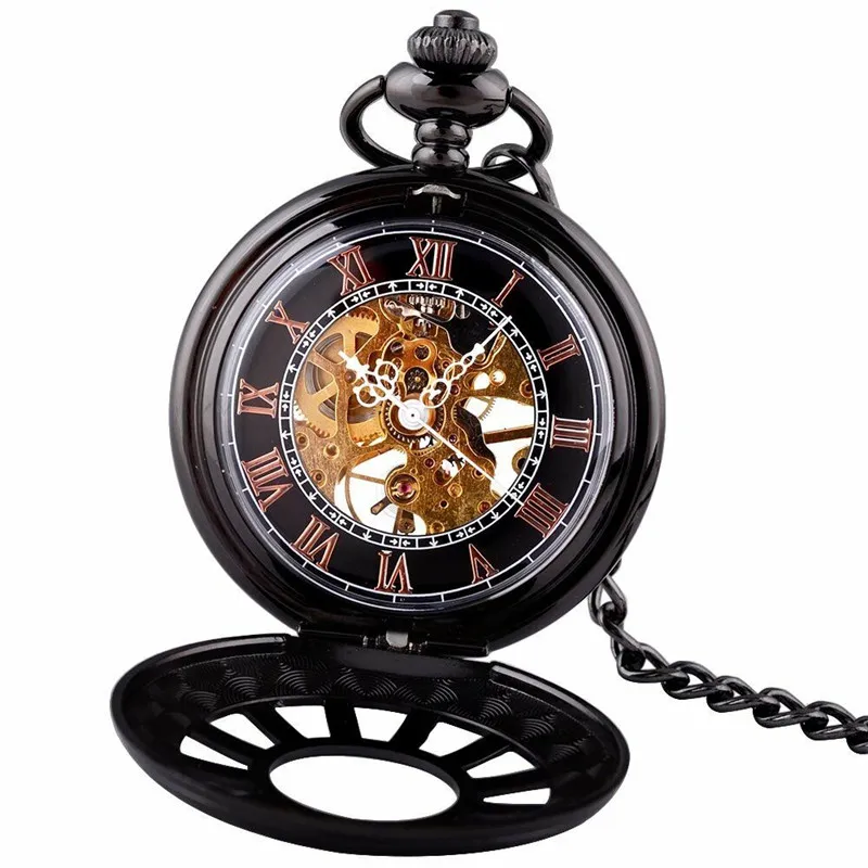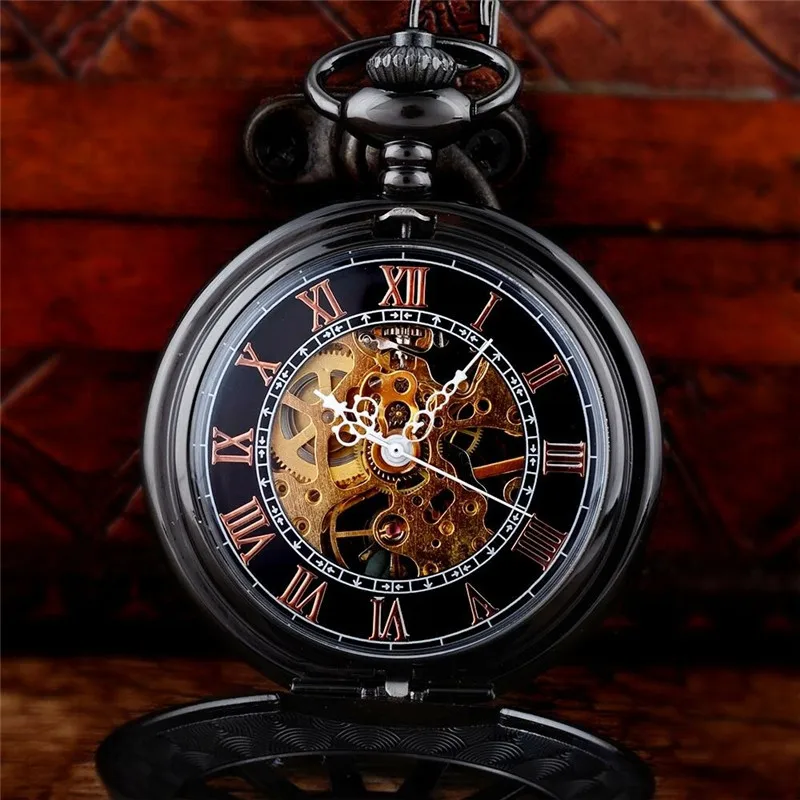 - ⌚ 블랙 기계식 스켈레톤 앤티크 스팀펑크 와인드업 회중시계