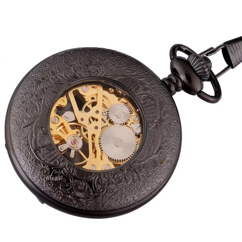 앤티크 스타일 블랙 회중 시계 기계식 해골 Steampunk