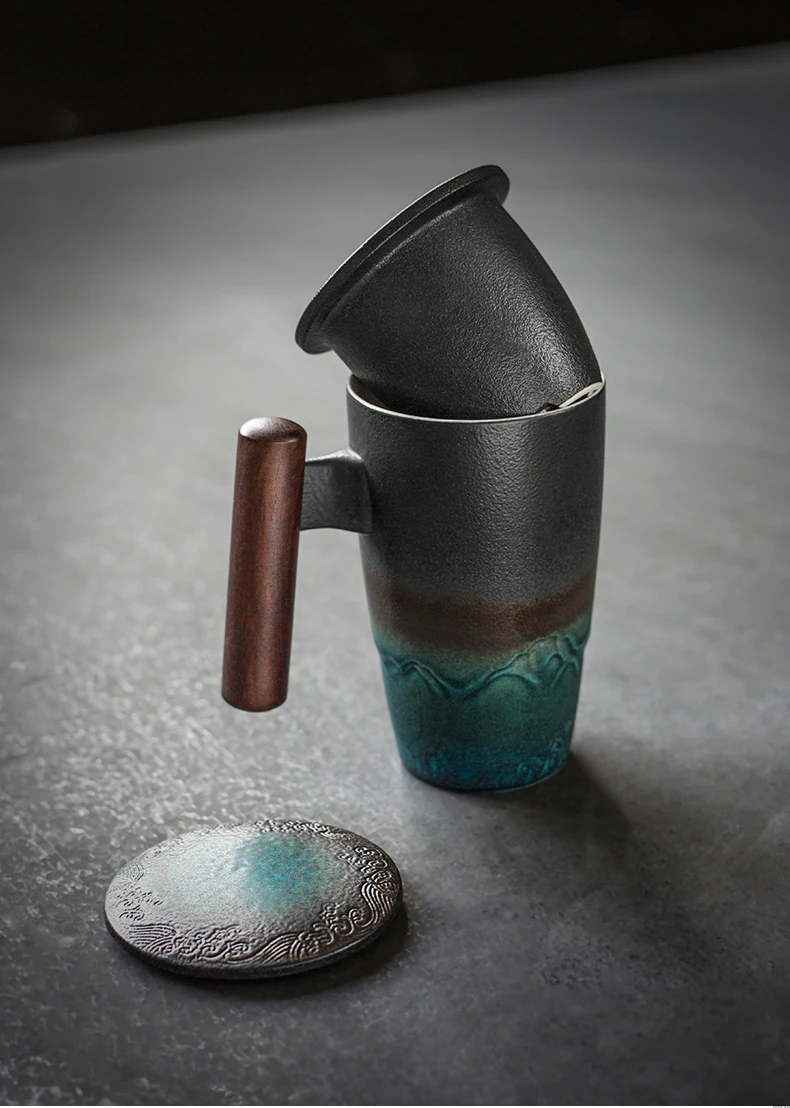 수제 세라믹 커피 & 차 머그잔 세트 | 350ml | 창의적인 복고풍 디자인