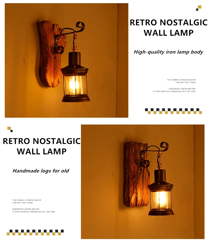 로프트 카페 바 침실에 대 한 레트로 나무 벽 램프 산업 스타일 LED 장식 조명기구