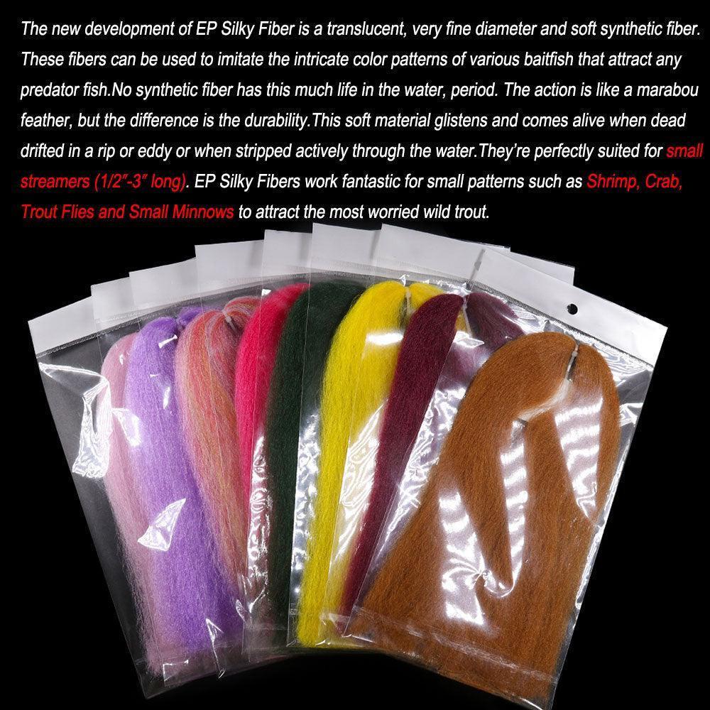 50cm 길이의 EP 실키 파이버 플라이 타잉 소재는 합성 섬유 기술의 판도를 바꾸는 소재입니다. 부드럽고 반짝이는 질감으로 완벽하게 제작된 이 소재는 수중에서 실물과 같은 품질을 제공하여 포식자 물고기를 유인하는 데 적합합니다. 대머리 깃털보다 내구성이 뛰어나 새우, 게, 송어 파리와 같은 작은 깃발과 패턴을 만드는 데 이상적인 소재입니다.