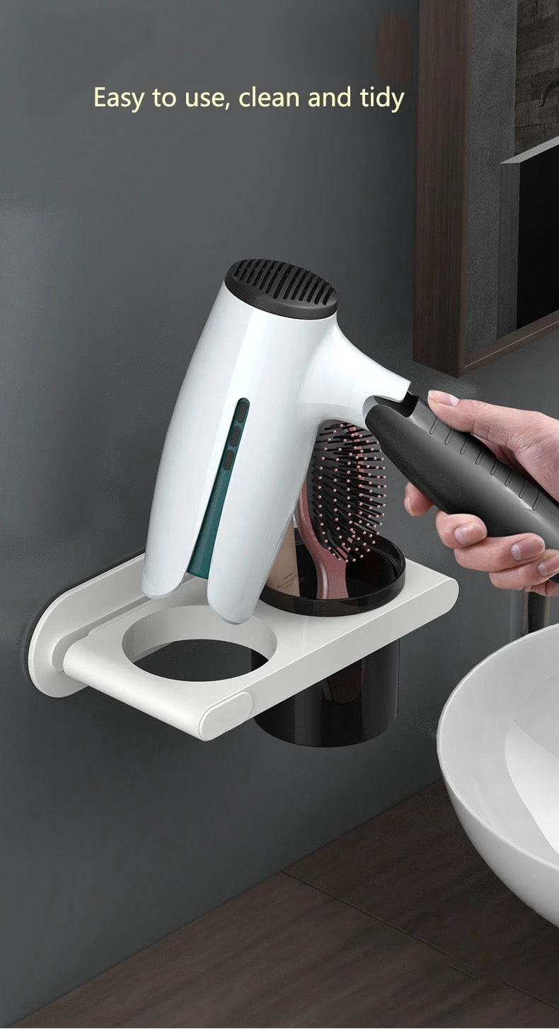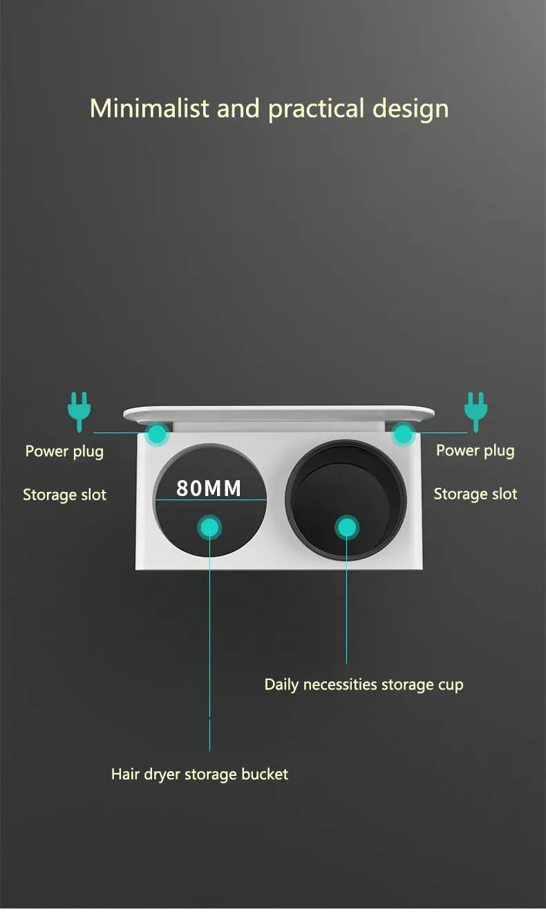 이름: 헤어드라이어 보관함 재질: ABS 환경 보호 재료 펀치 없는 설치 간단하고 실용적입니다. 일상용품을 쉽게 보관할 수 있습니다.