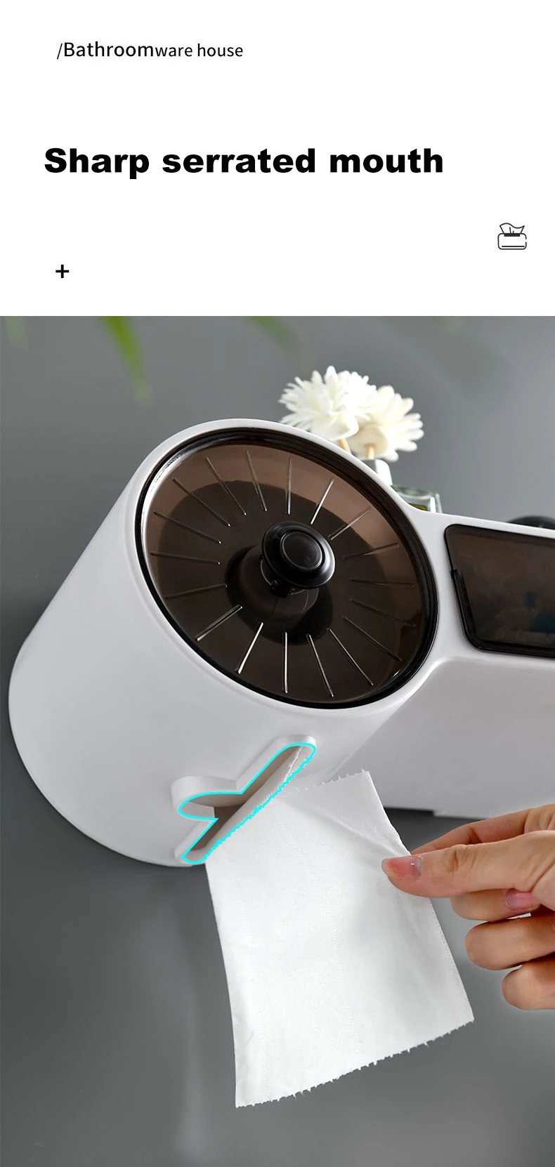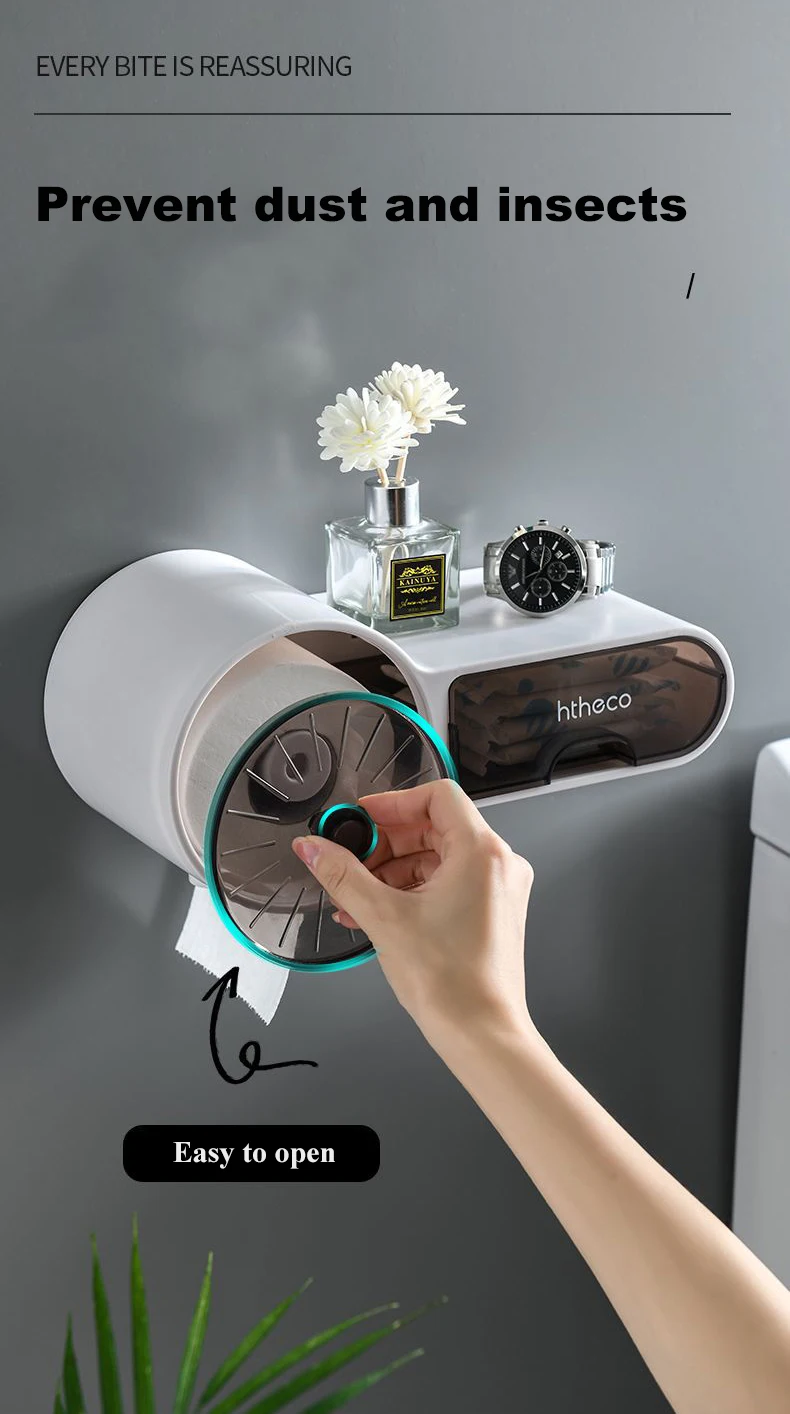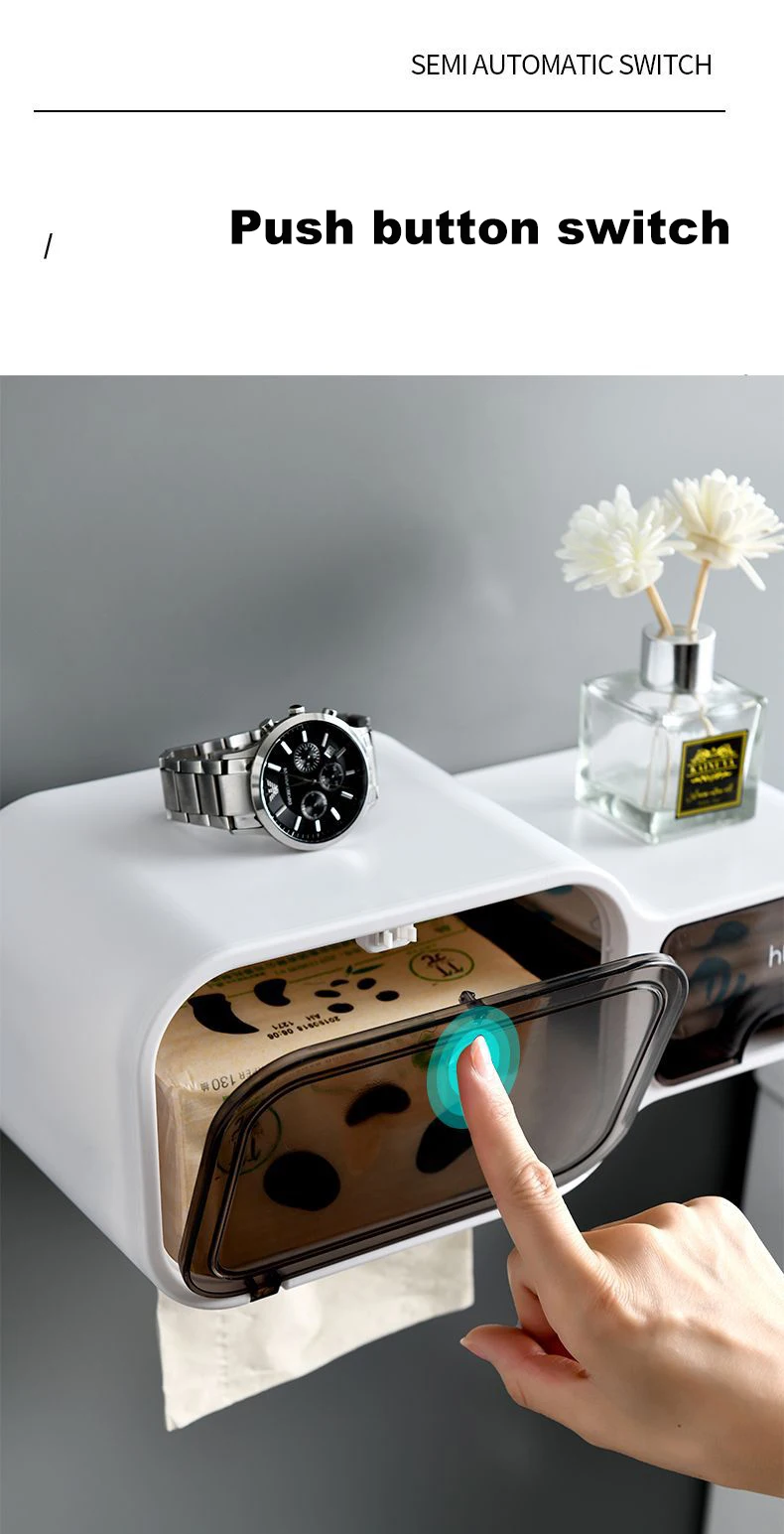 욕실 화장지 홀더는 욕실을 정돈된 상태로 유지하는 데 도움이 되는 독특하고 필수적인 제품입니다. 다기능 디자인으로 쓰레기봉투, 물티슈, 휴대폰, 안경 등 다양한 물건을 보관할 수 있습니다. 방수 밀봉 덕분에 종이 타월을 건조한 상태로 유지하고 바로 사용할 수 있습니다.