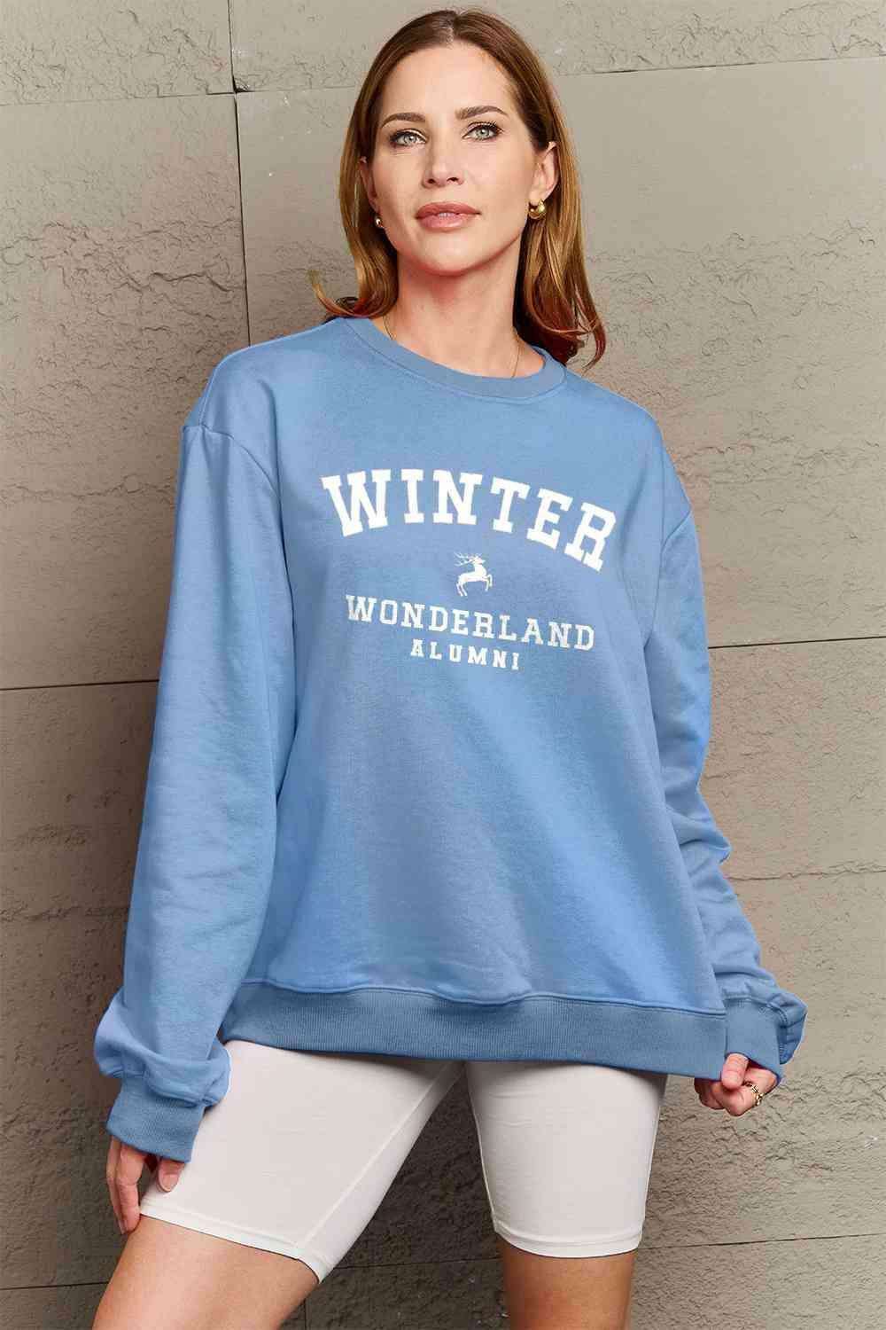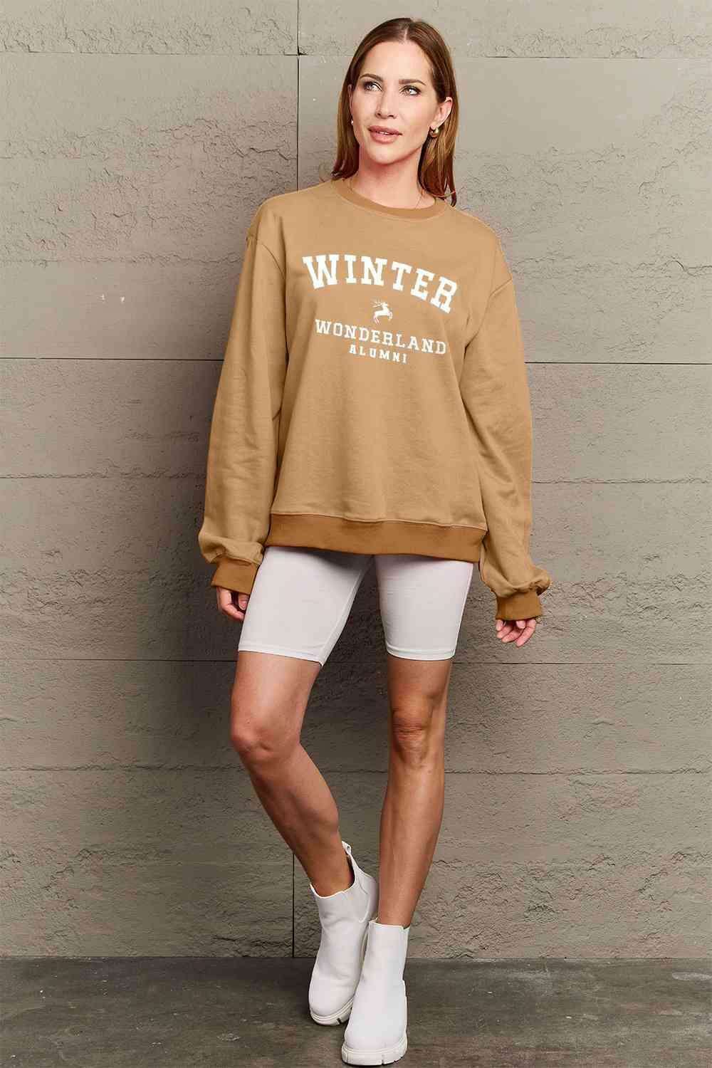 Simply Love 풀사이즈 WINTER WONDERLAND ALUMNI 그래픽 긴팔 스웨트셔츠