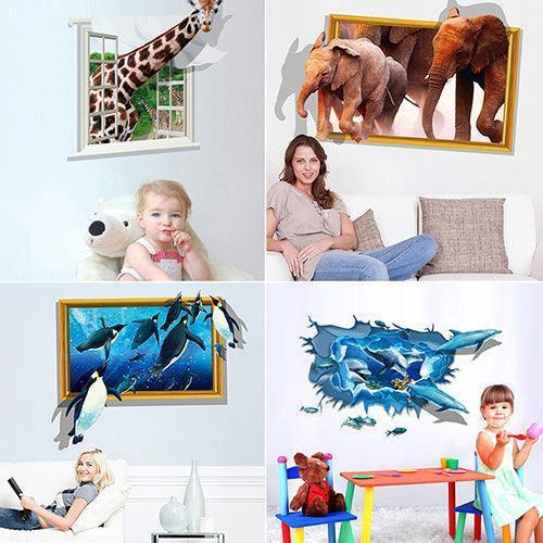 이동식 3D 동물 패턴 침실 거실 벽 스티커 크리 에이 티브 홈 장식