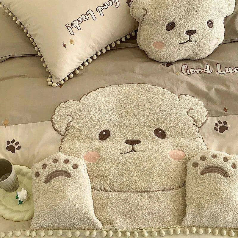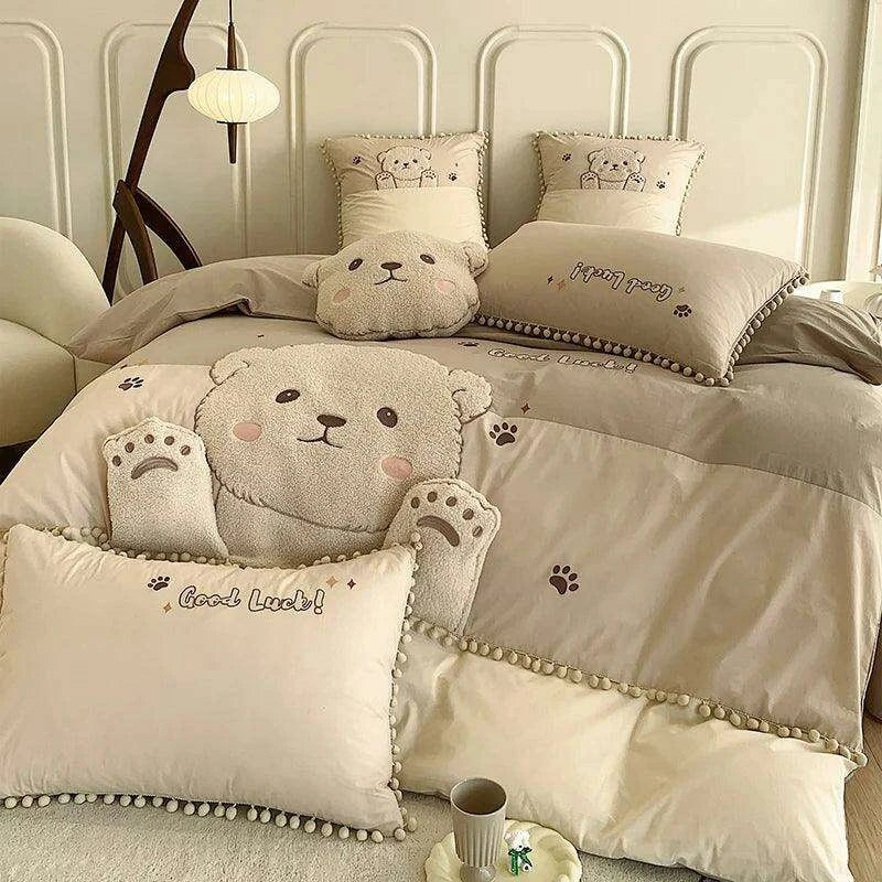 Whimsical Cartoon Bear Embroidered Kids' Cotton Bedding Set - 100% Cotton Duvet Cover, Sheet, and Pillowcases- Très Elite- Très Elite