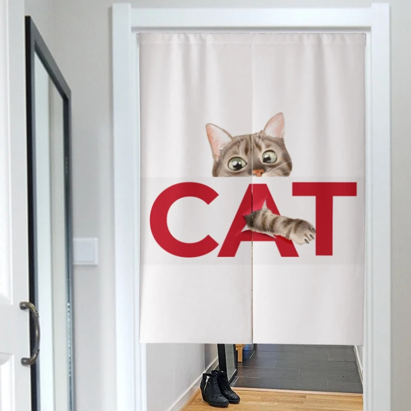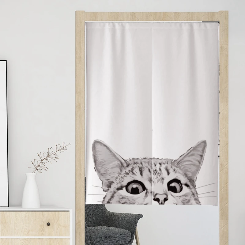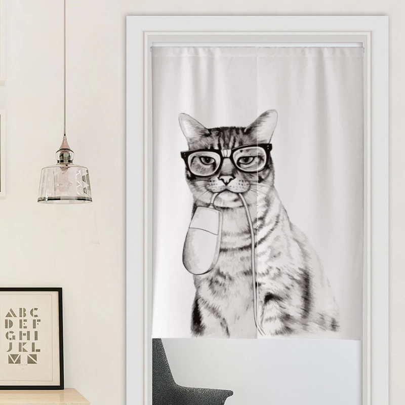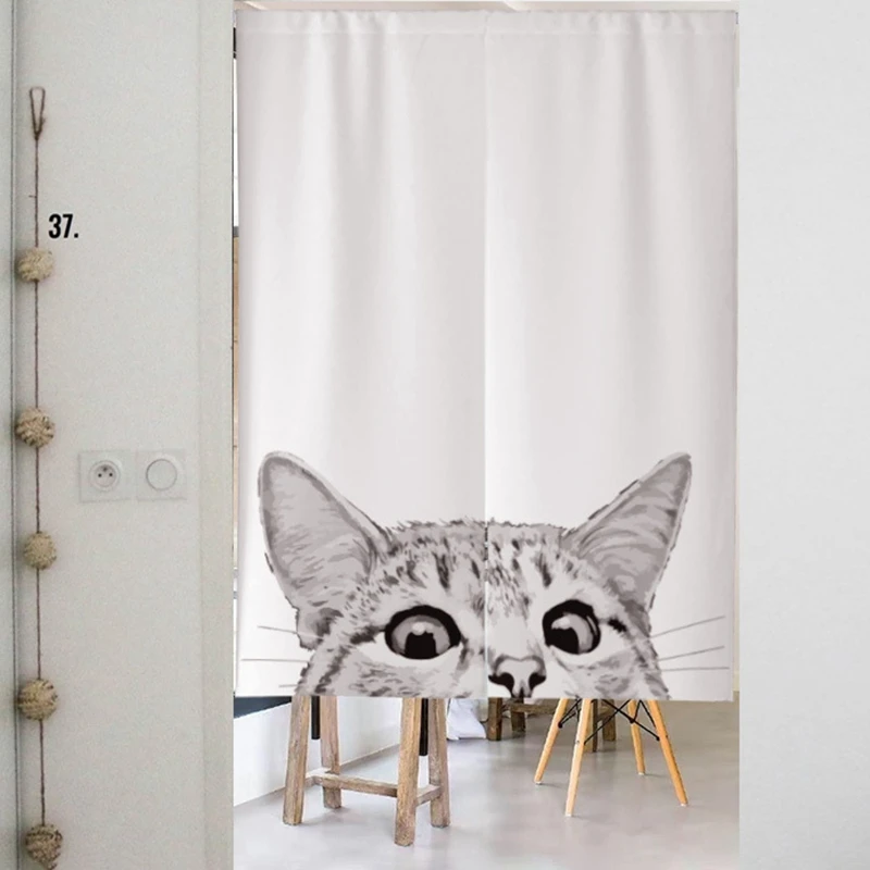 흰색 분할 문 커튼 3D 고양이 인쇄 하프 커튼 일본 짧은 드레이프