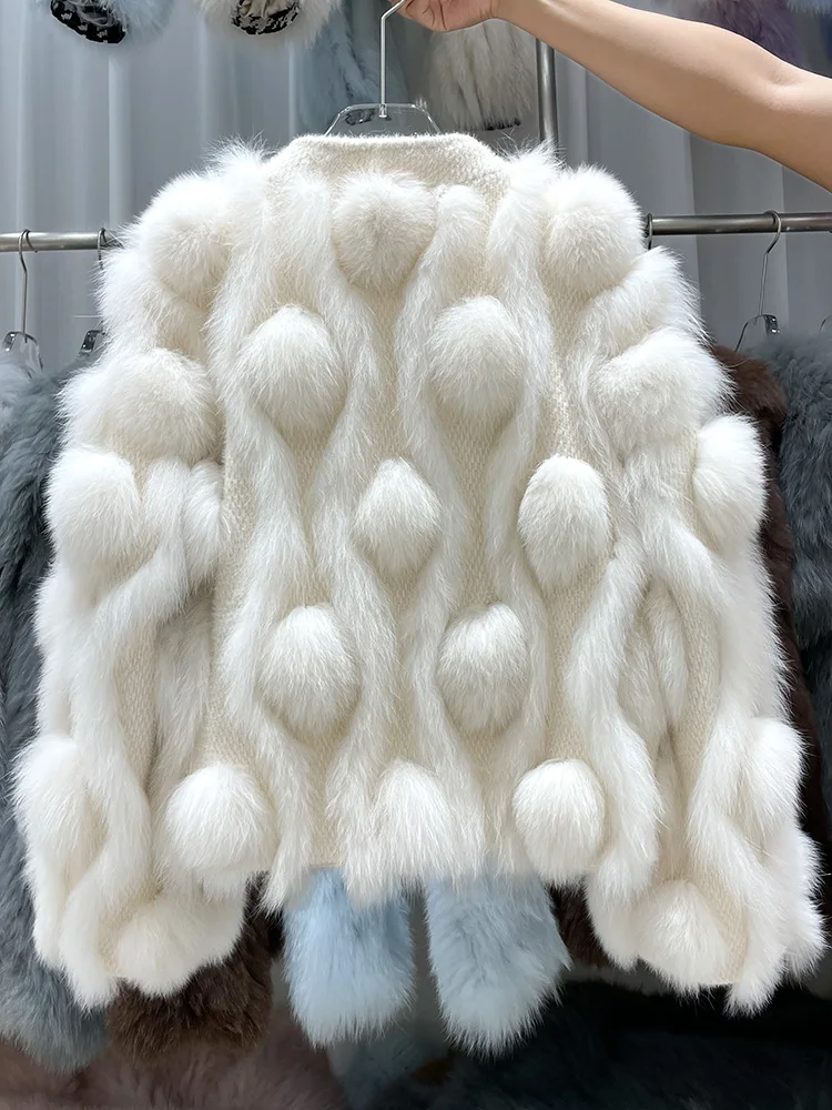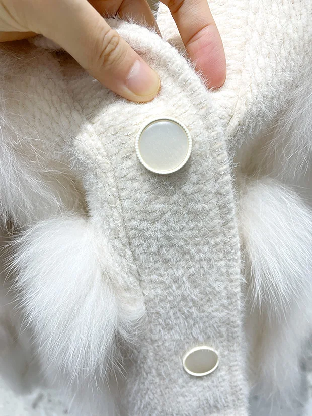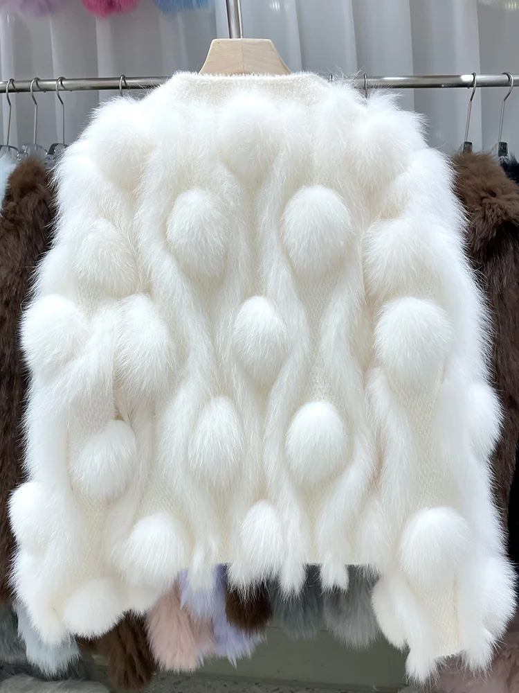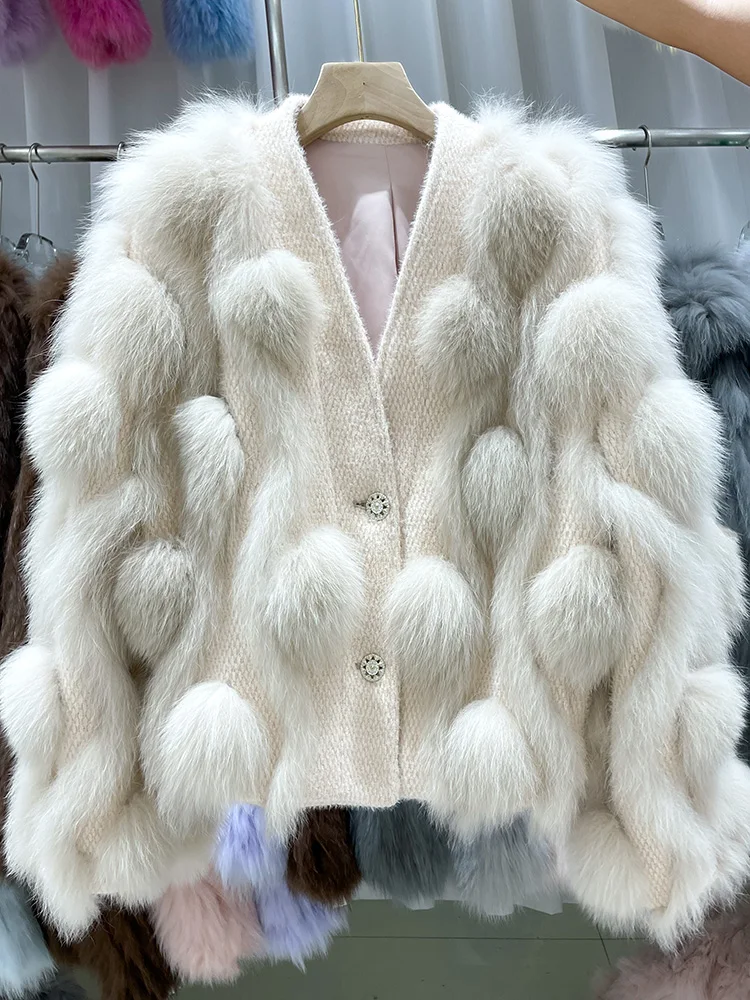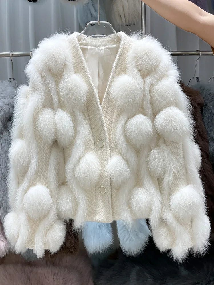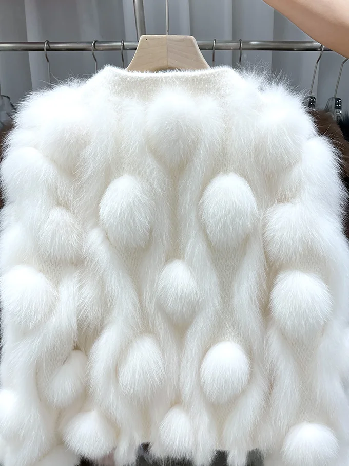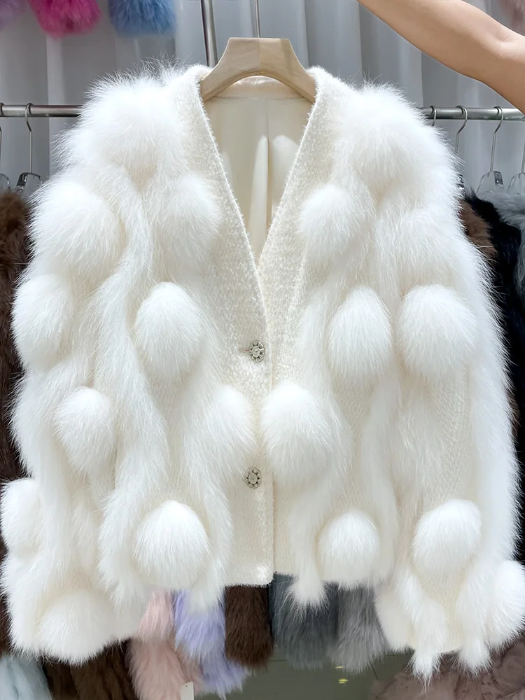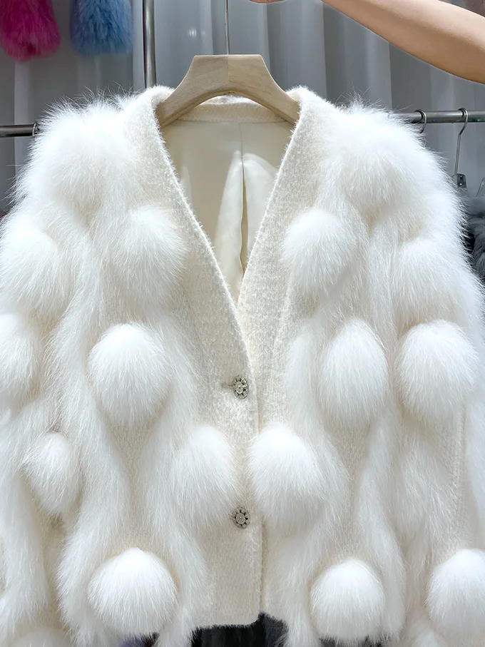 ZDFURS * 스포크 화이트 폭스 모피 모피 코트 여성용 짧은 2022 새로운 니트 카디건 v 넥 모피 코트 겨울