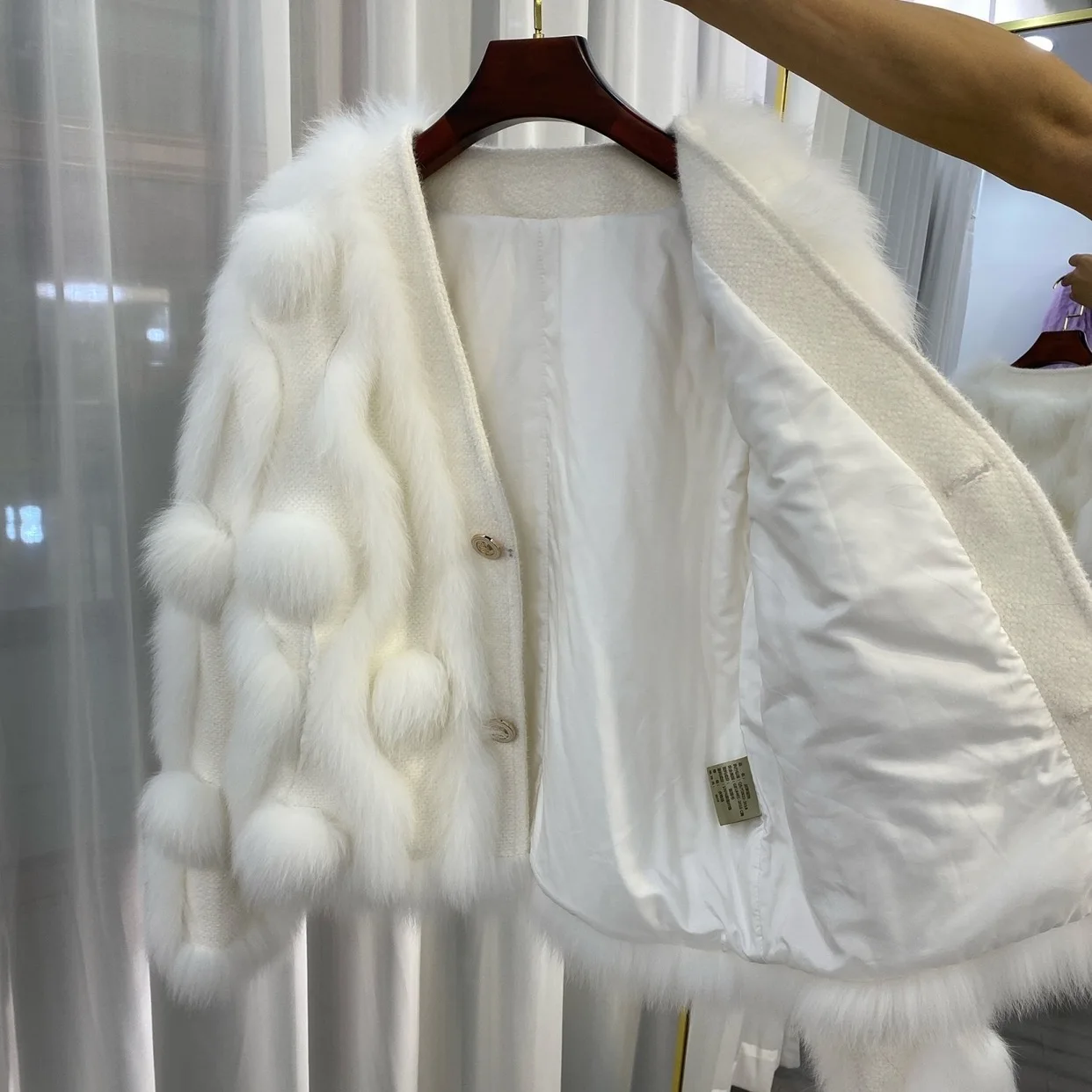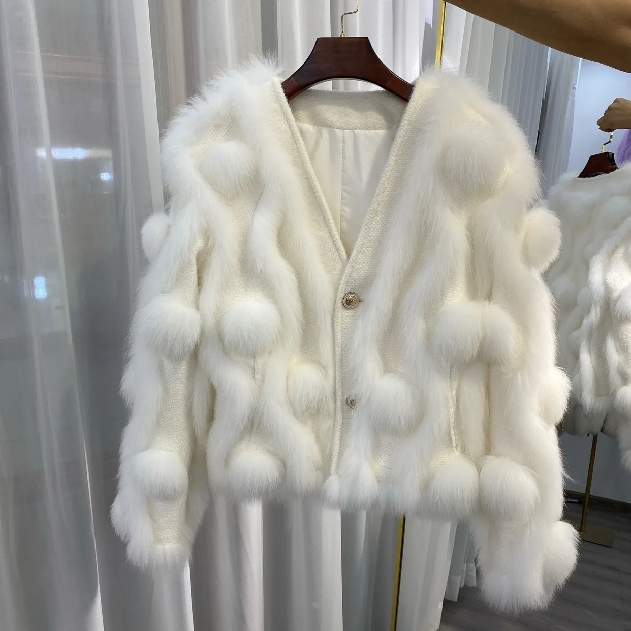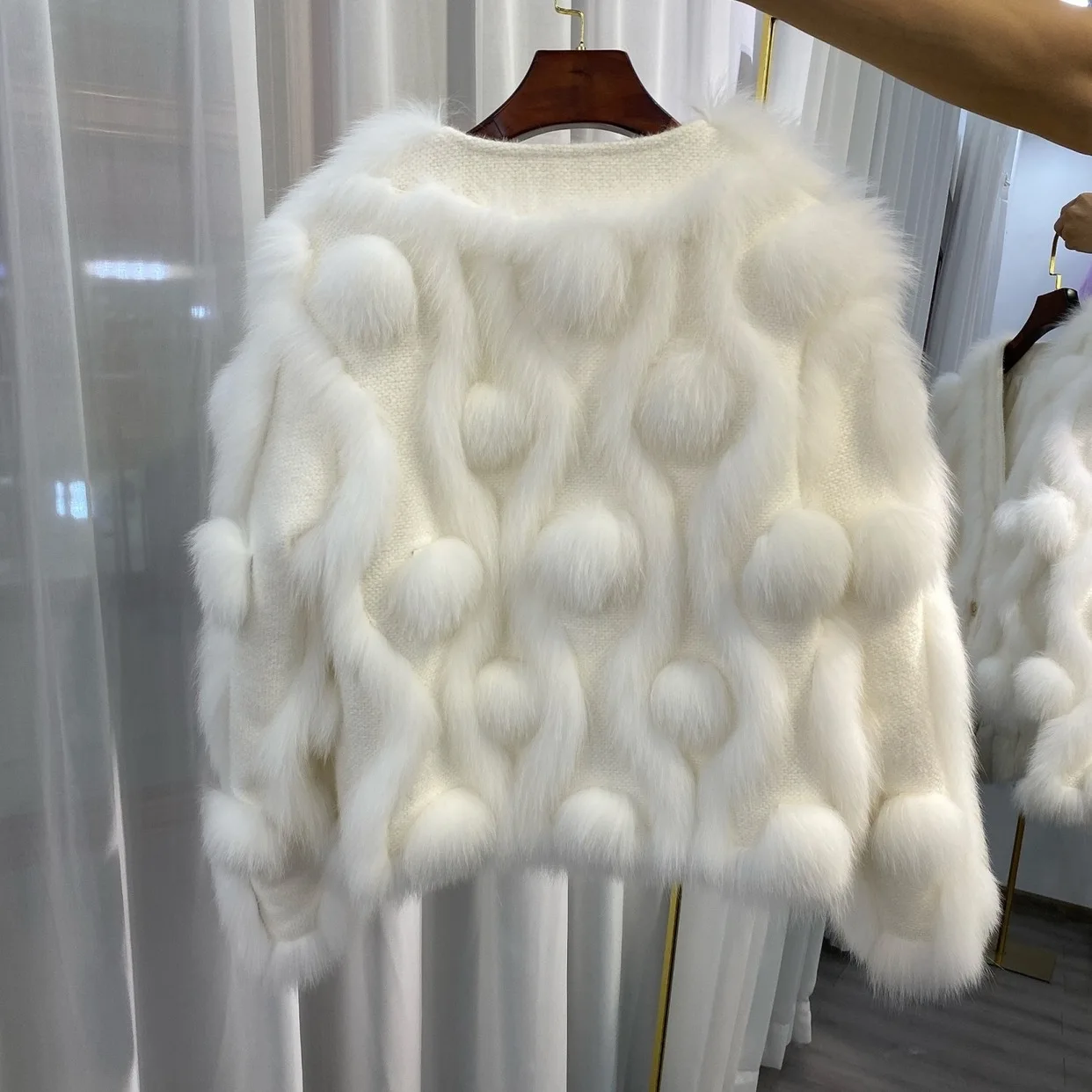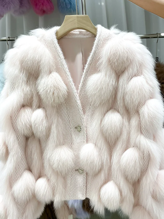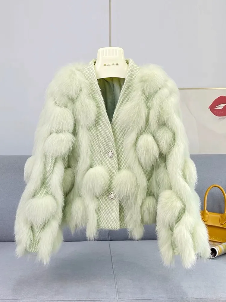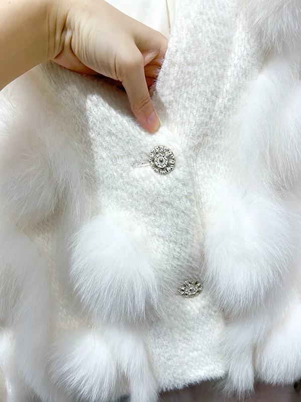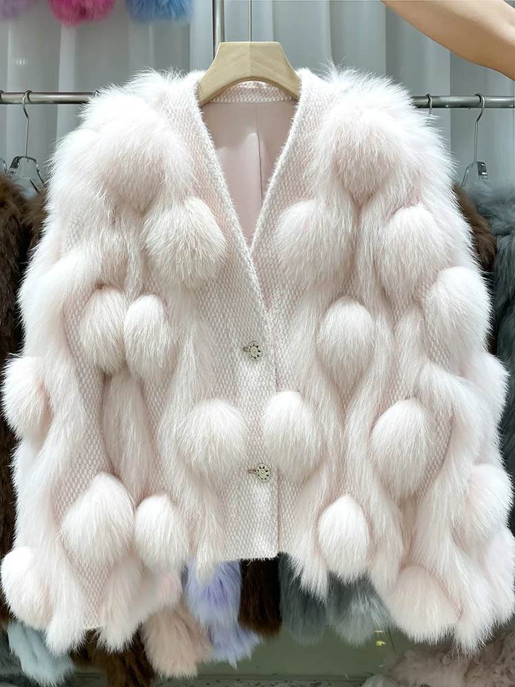 ZDFURS * 스포크 화이트 폭스 모피 모피 코트 여성용 짧은 2022 새로운 니트 카디건 v 넥 모피 코트 겨울