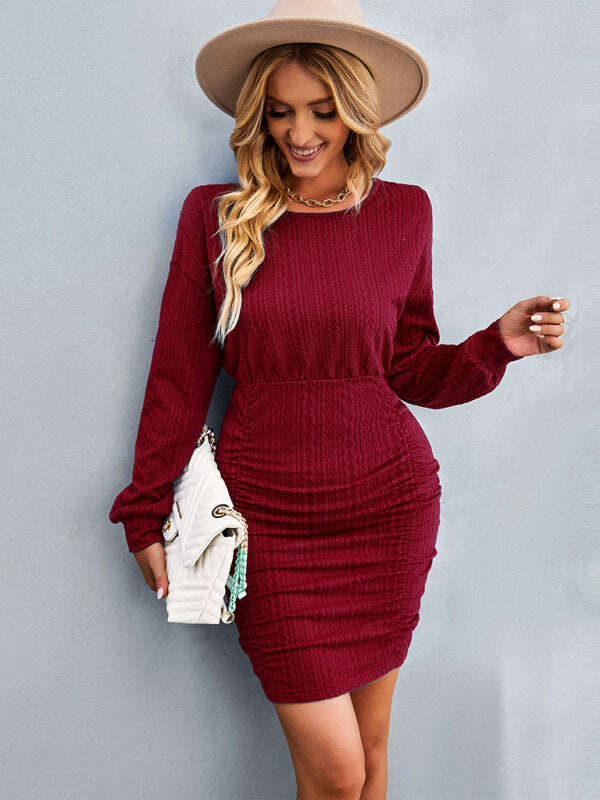 Women's Solid Color Round Neck Drop Shoulder Sleeve Dress