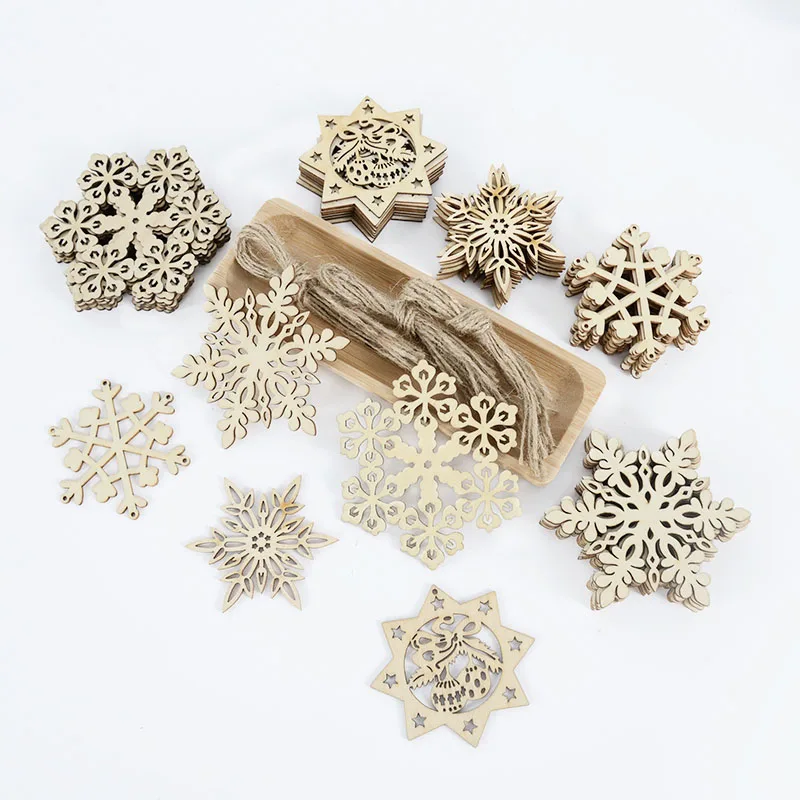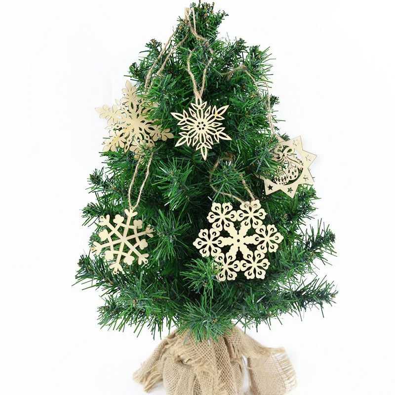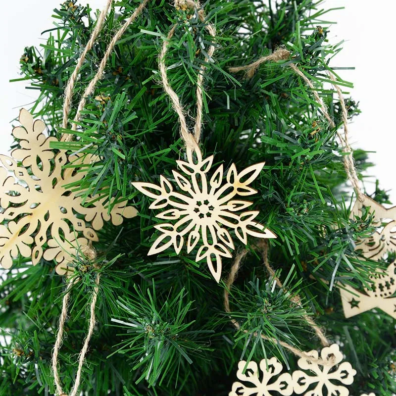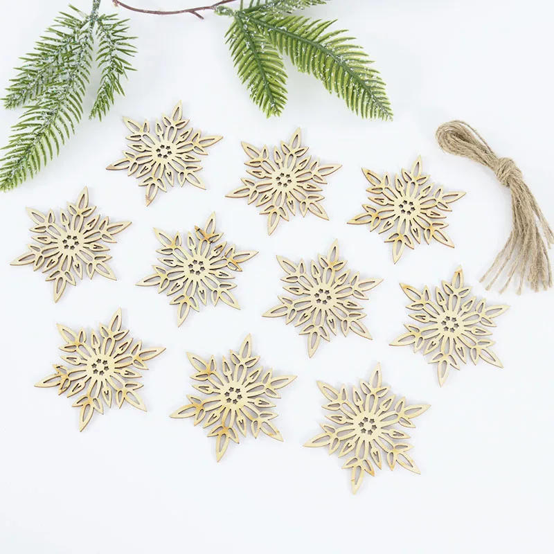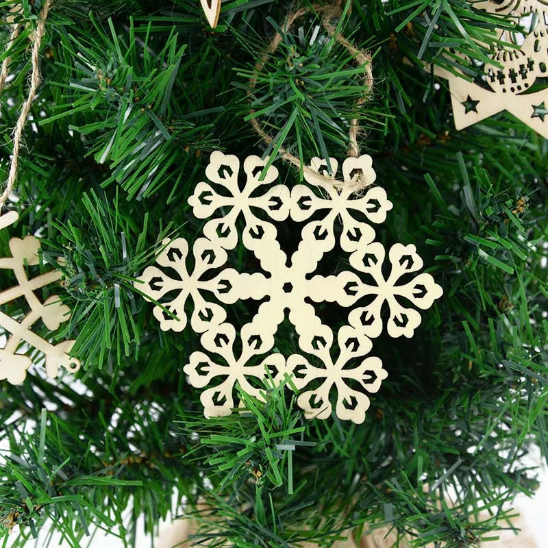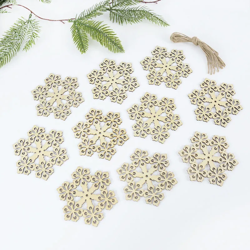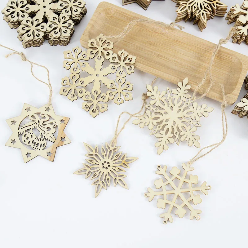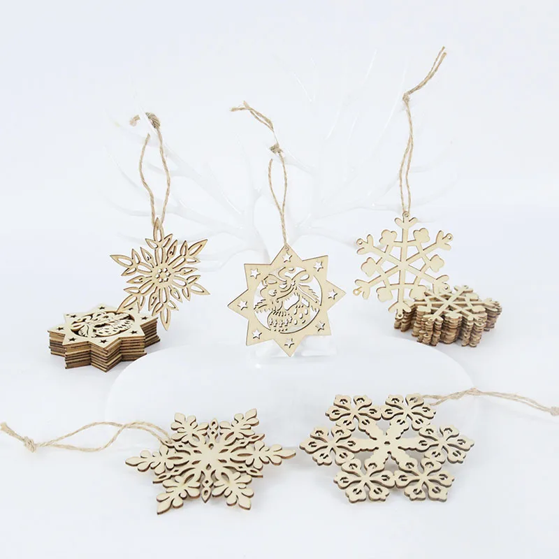 10pcs 나무 눈송이 칩 DIY 크리스마스 트리 장식 교수형 펜 던 트 Xmas Navidad Natal 홈 장식 2023 신년 선물