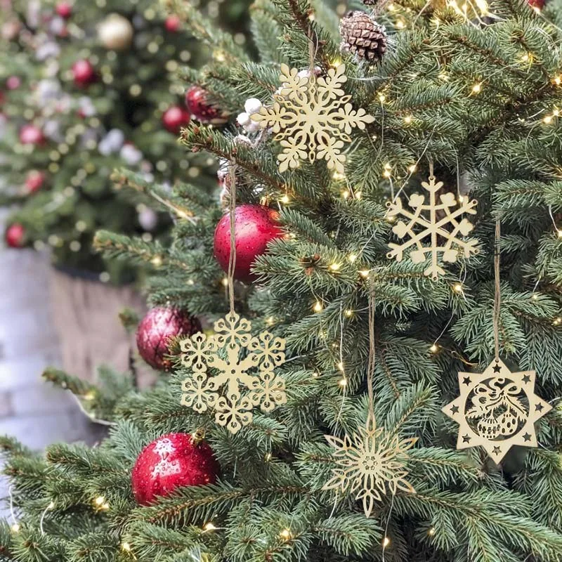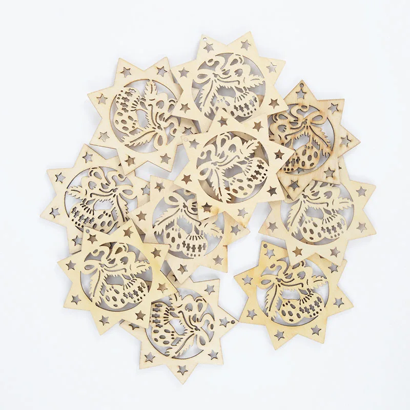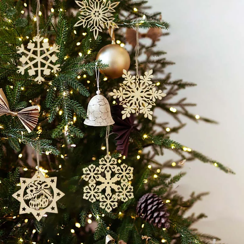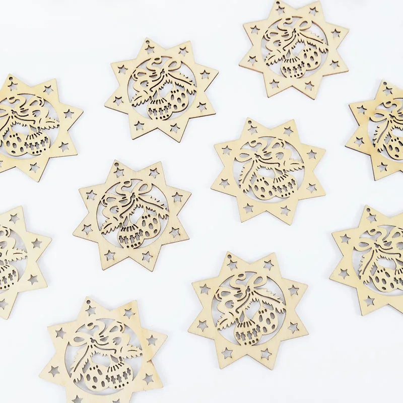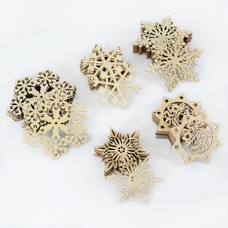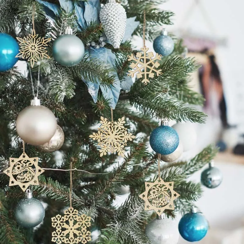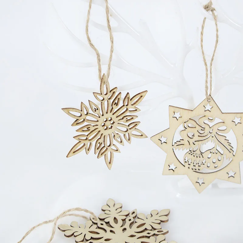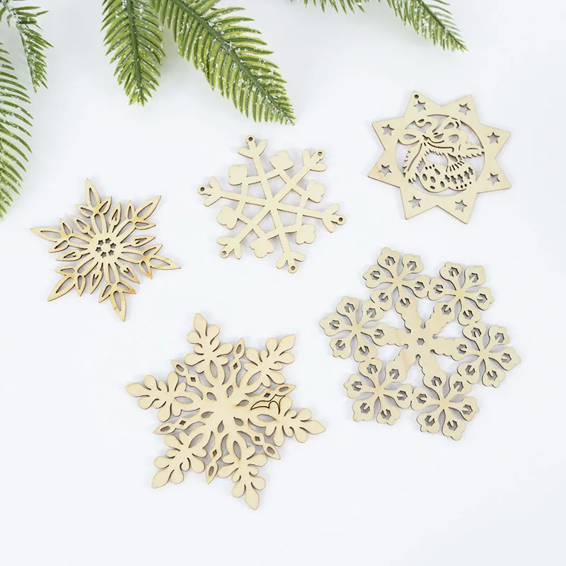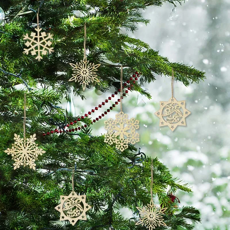 10pcs 나무 눈송이 칩 DIY 크리스마스 트리 장식 교수형 펜 던 트 Xmas Navidad Natal 홈 장식 2023 신년 선물