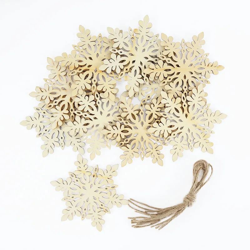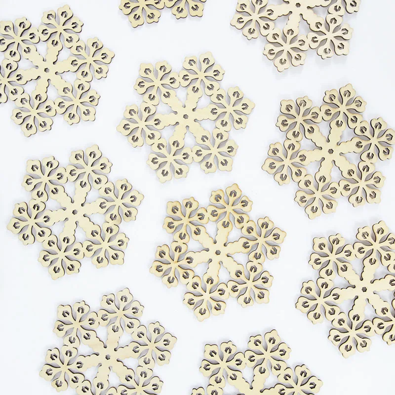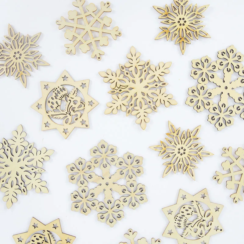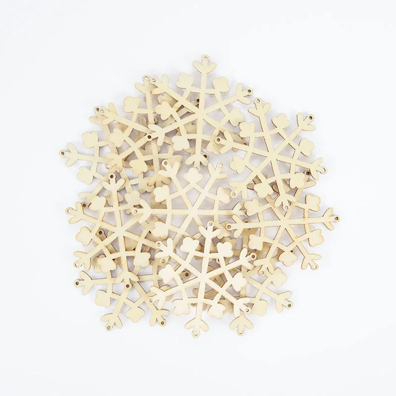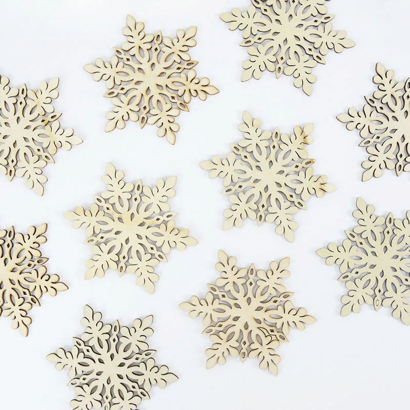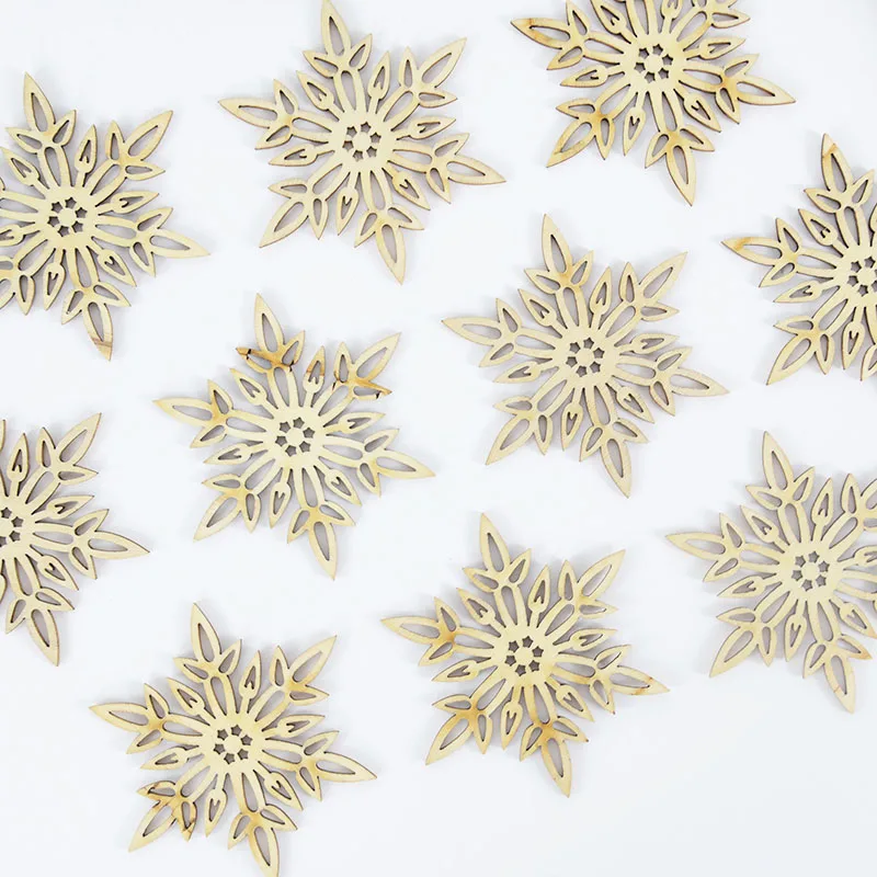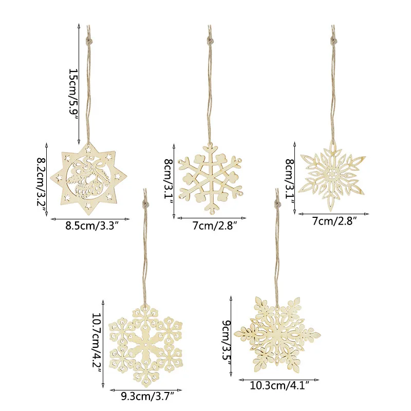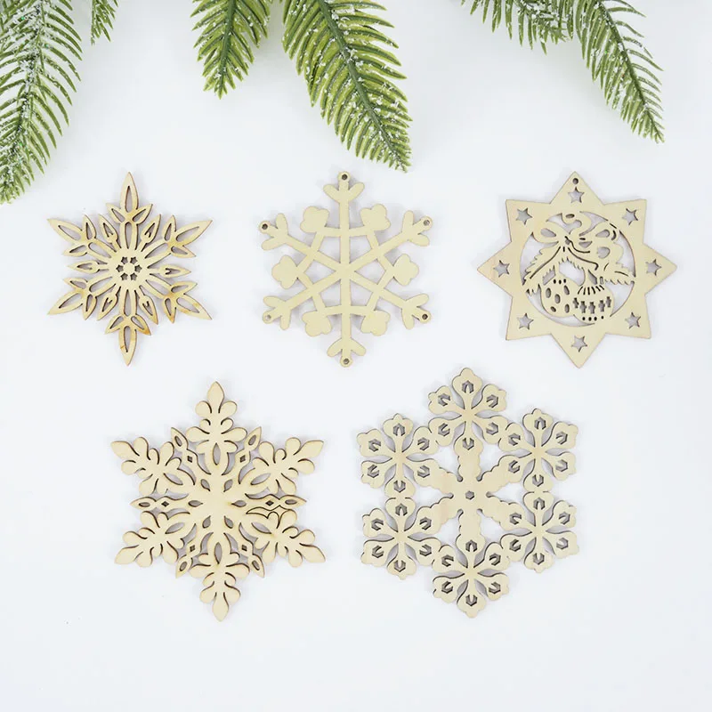 10pcs 나무 눈송이 칩 DIY 크리스마스 트리 장식 교수형 펜 던 트 Xmas Navidad Natal 홈 장식 2023 신년 선물