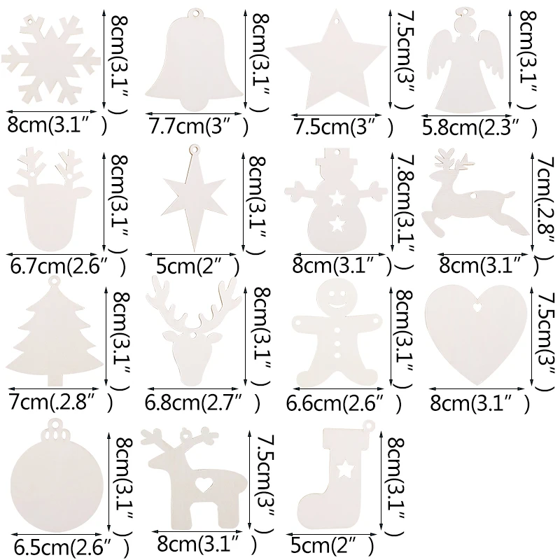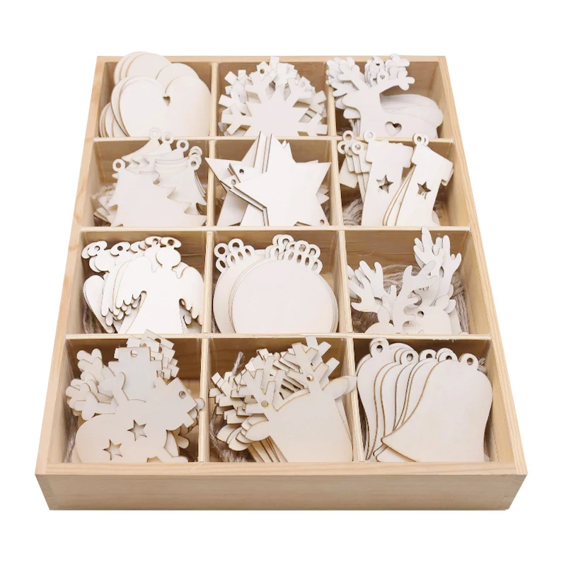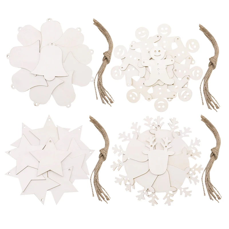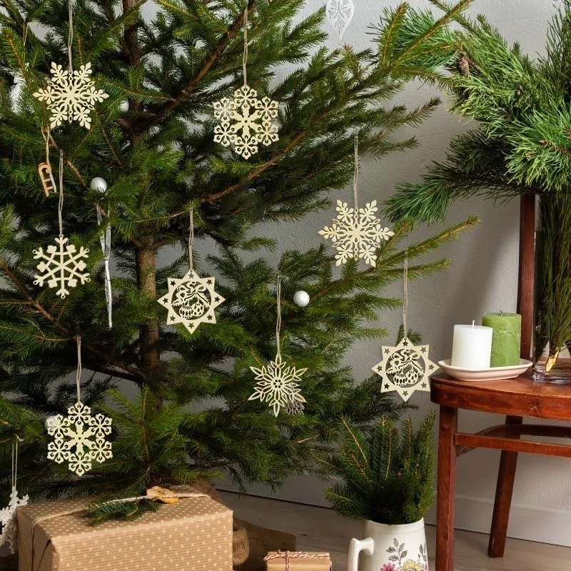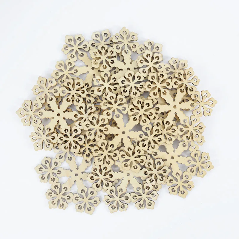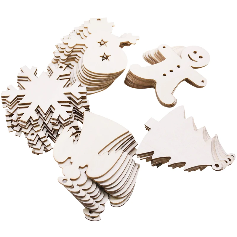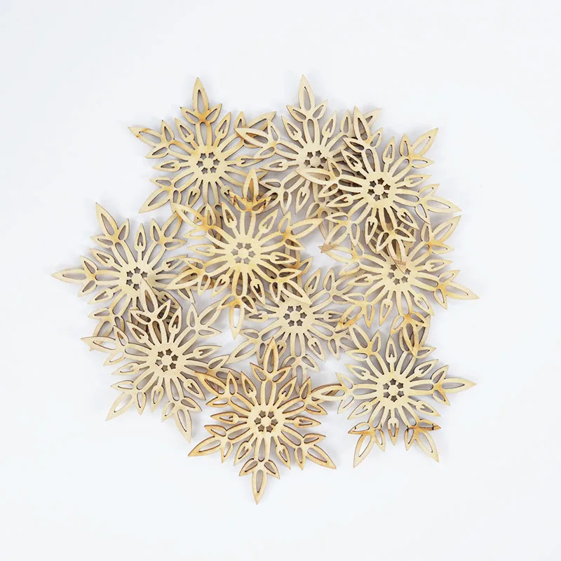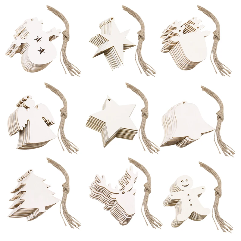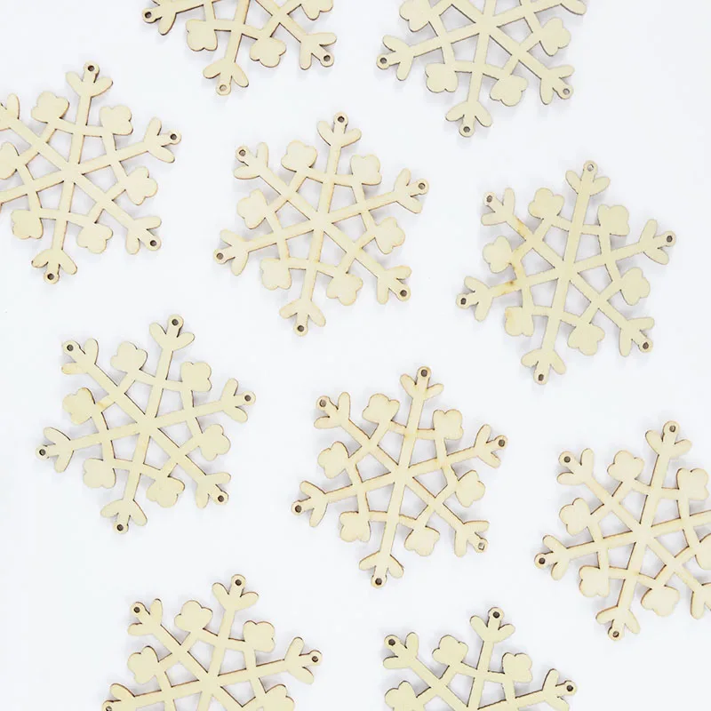 10pcs 나무 눈송이 칩 DIY 크리스마스 트리 장식 교수형 펜 던 트 Xmas Navidad Natal 홈 장식 2023 신년 선물