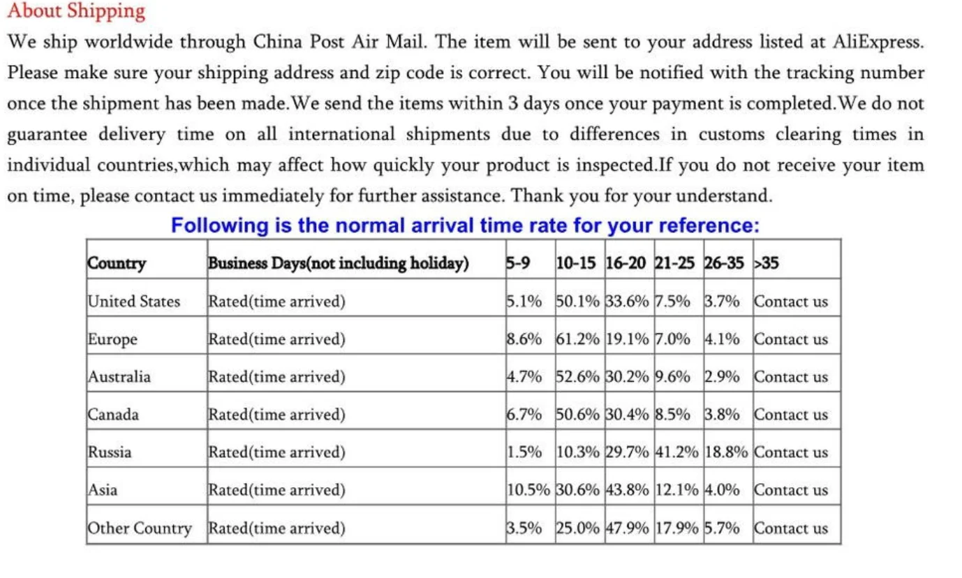 Enjoy worldwide shipping with same-day dispatch on eligible items and 3–7 business days for most regular orders. Delivery time depends on the shipping method you choose, and the estimated arrival date is shown on each product page.