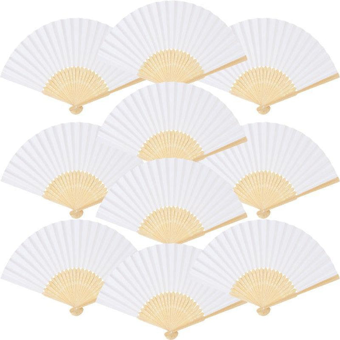 Elegant White Bamboo Handheld Fans - Premium Paper Fans Set for Weddings and Events