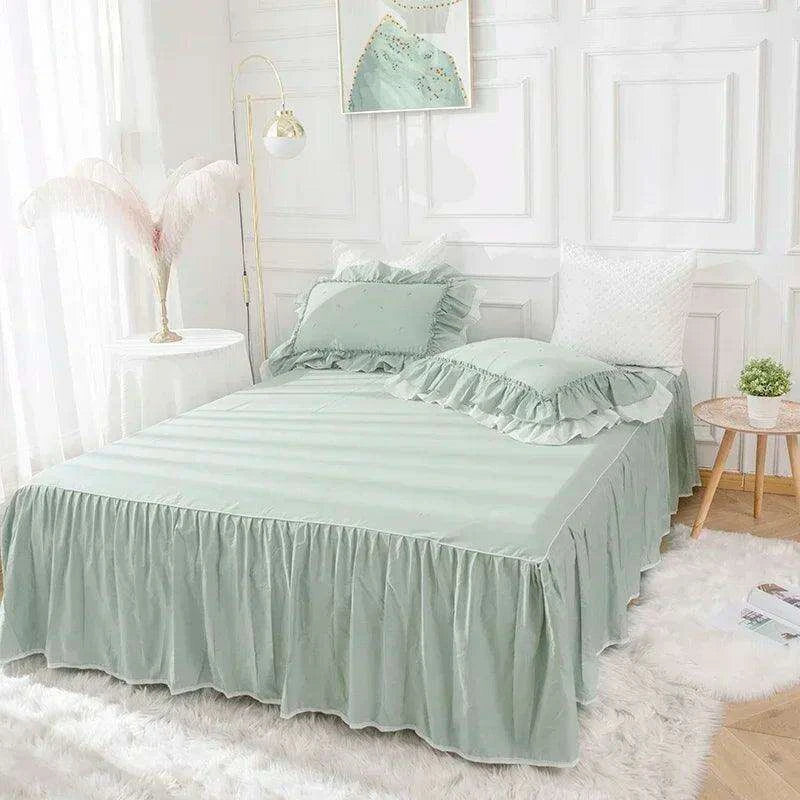 100% Cotton Solid Color Ruffled Bedding Set with Duvet Cover, Bed Skirt, and Pillowcases - Très Elite- Très Elite