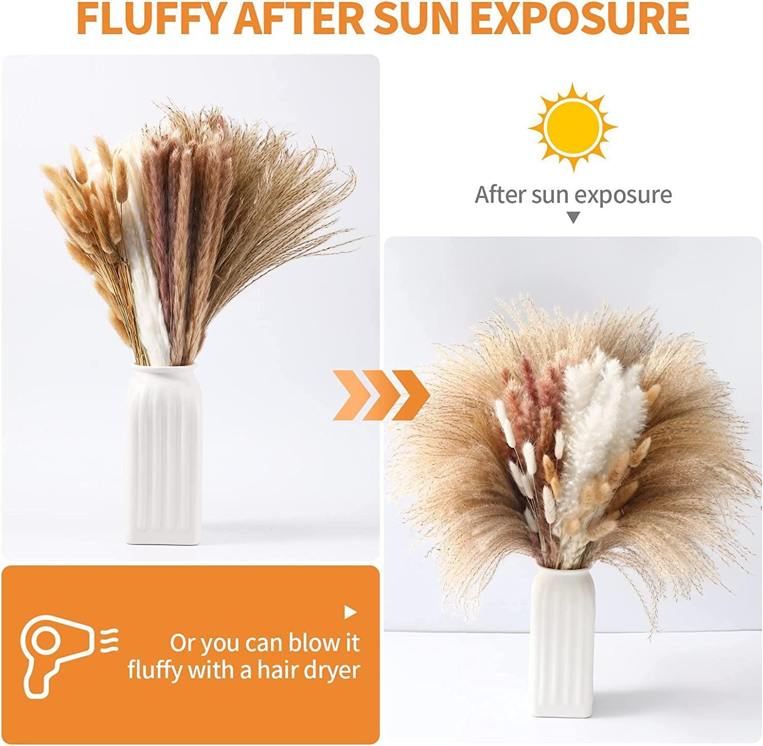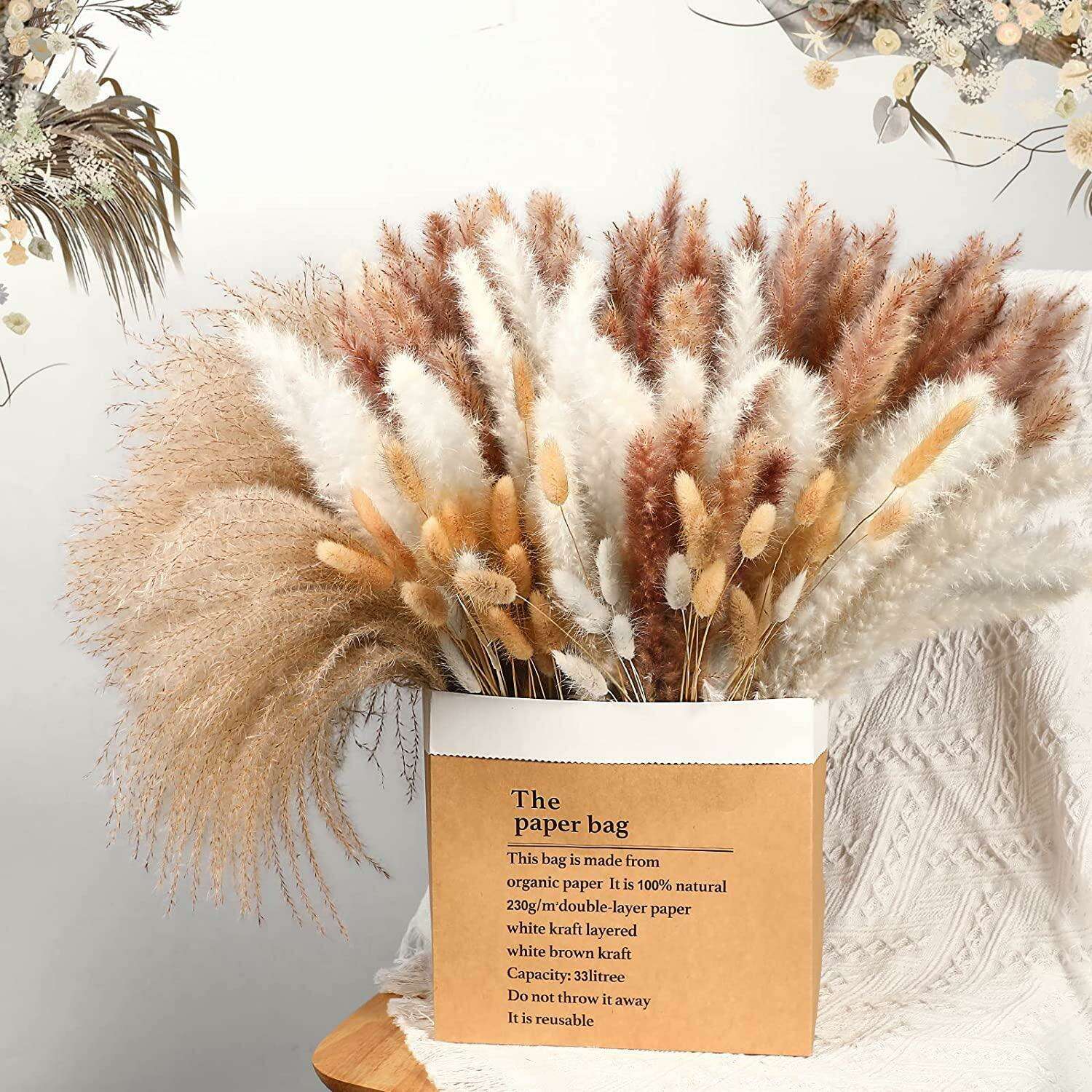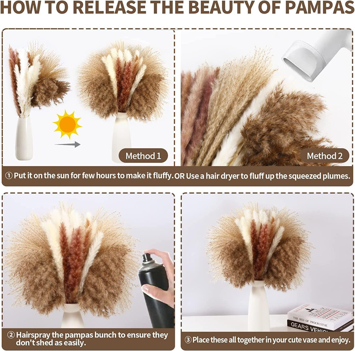 • Nature-inspired Bouquet: Each bundle is meticulously crafted from high-quality dried pampas grass, offering a touch of sophistication and a rustic charm.