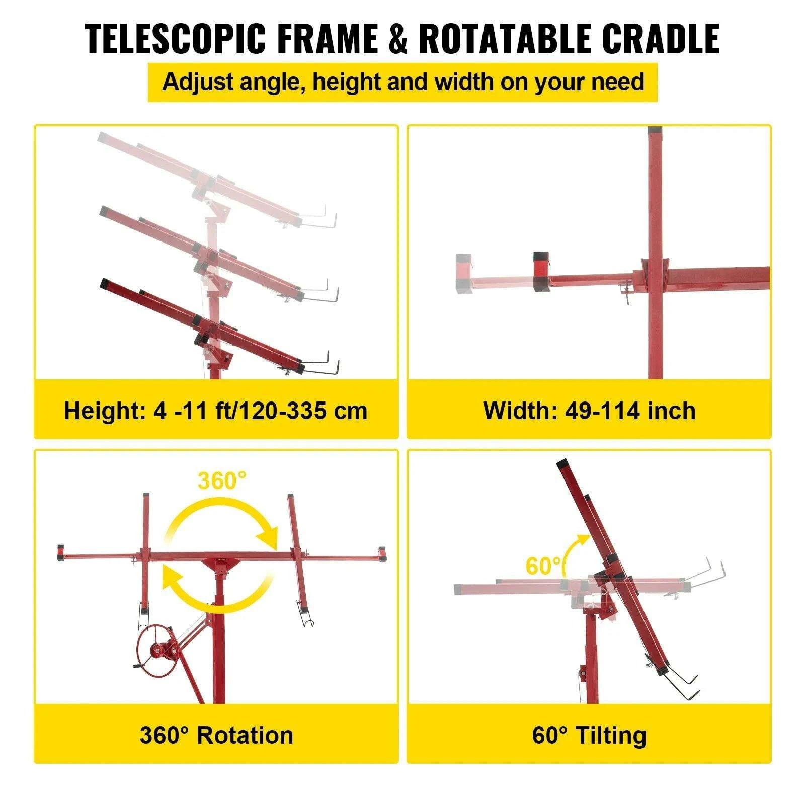 11FT Heavy-Duty Red Drywall Hoist with Adjustable Width and 360° Rotation - Professional Plasterboard Lifter