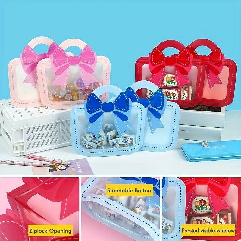 12-Pack Elegant Self-Standing Gift Bags with Charming Bows - Ideal for Celebrations, Treats & Business Packaging