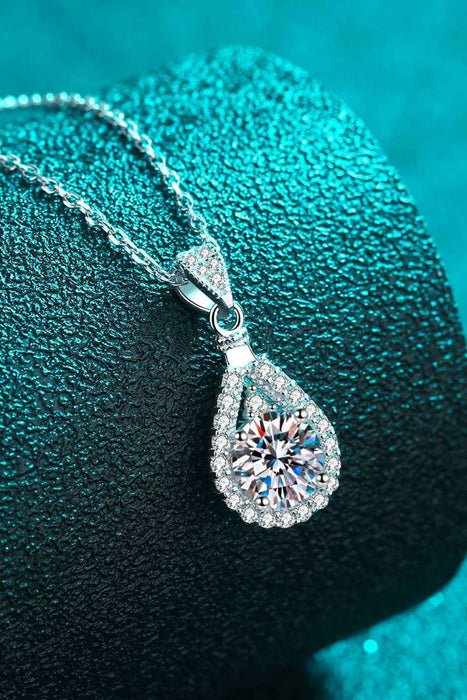 Elegant Lab-Diamond Teardrop Silver Pendant Necklace