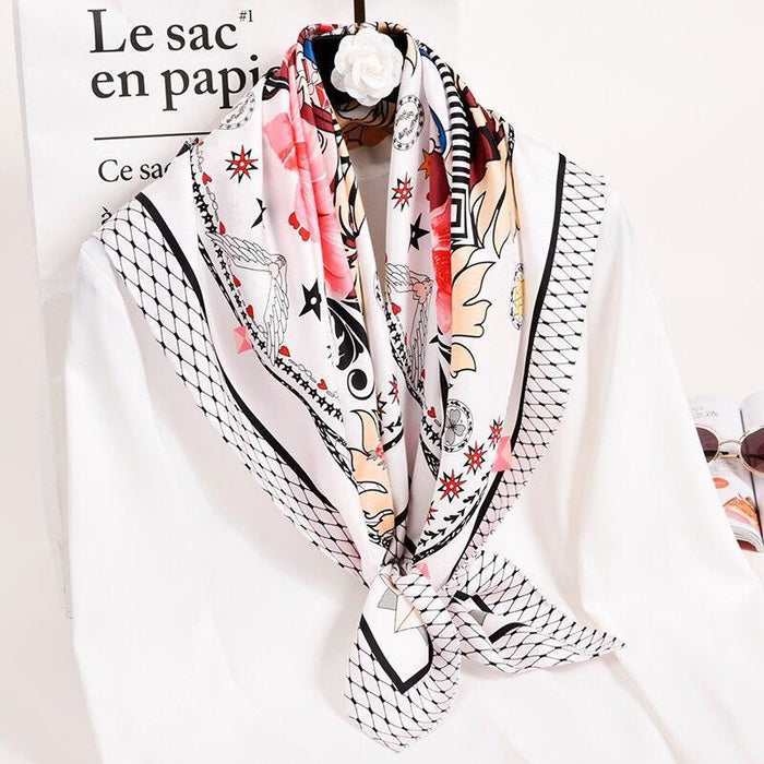 Exquisite Hangzhou Print 100% Silk Square Scarf - Timeless Elegance Design