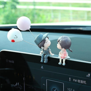 Charming Balloon-Bearing Cartoon Couple Dashboard Decor for Your Vehicle