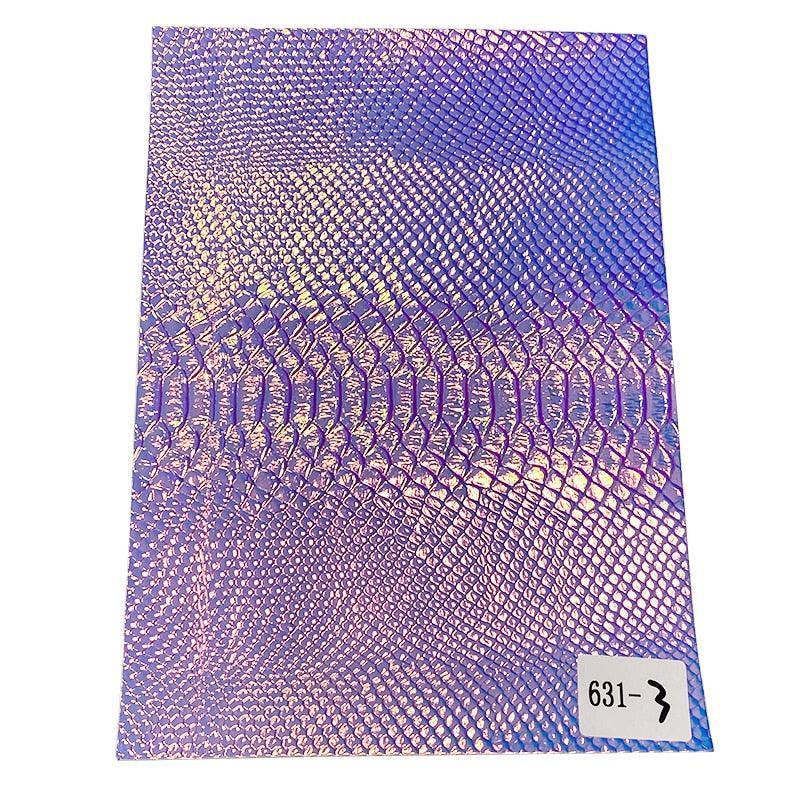 Transform your ideas into stunning realities with this high-quality faux leather crafting sheet. Made from holographic spunlace fabric, it features a mesmerizing snake skin grain embossed texture that adds a touch of sophistication to any project. Whether you're creating fashionable pieces or unique accessories, this versatile material is perfect for: